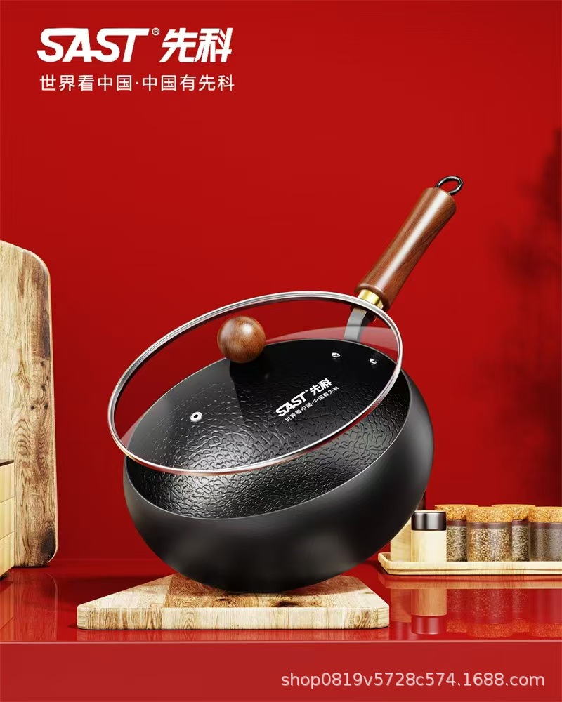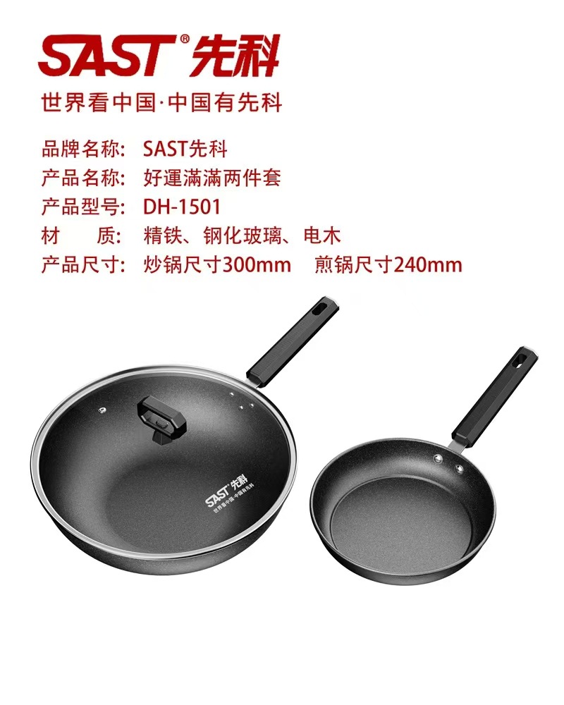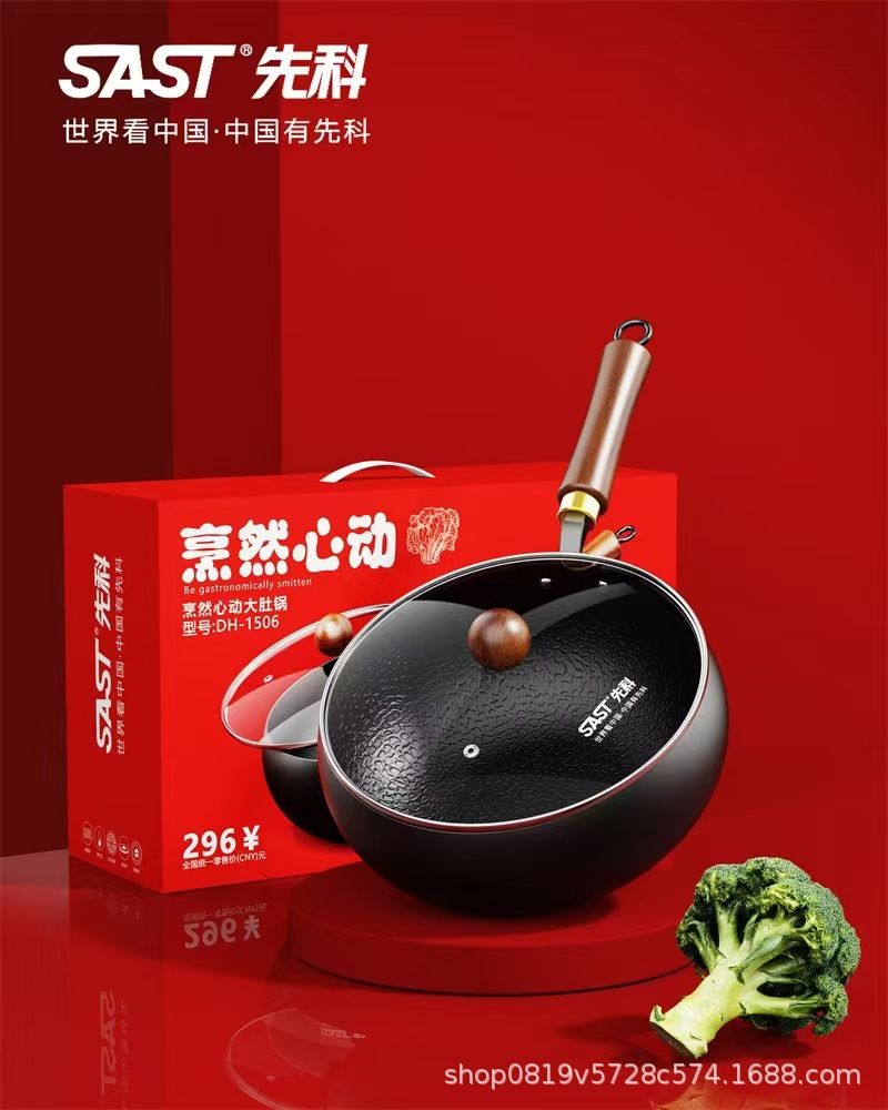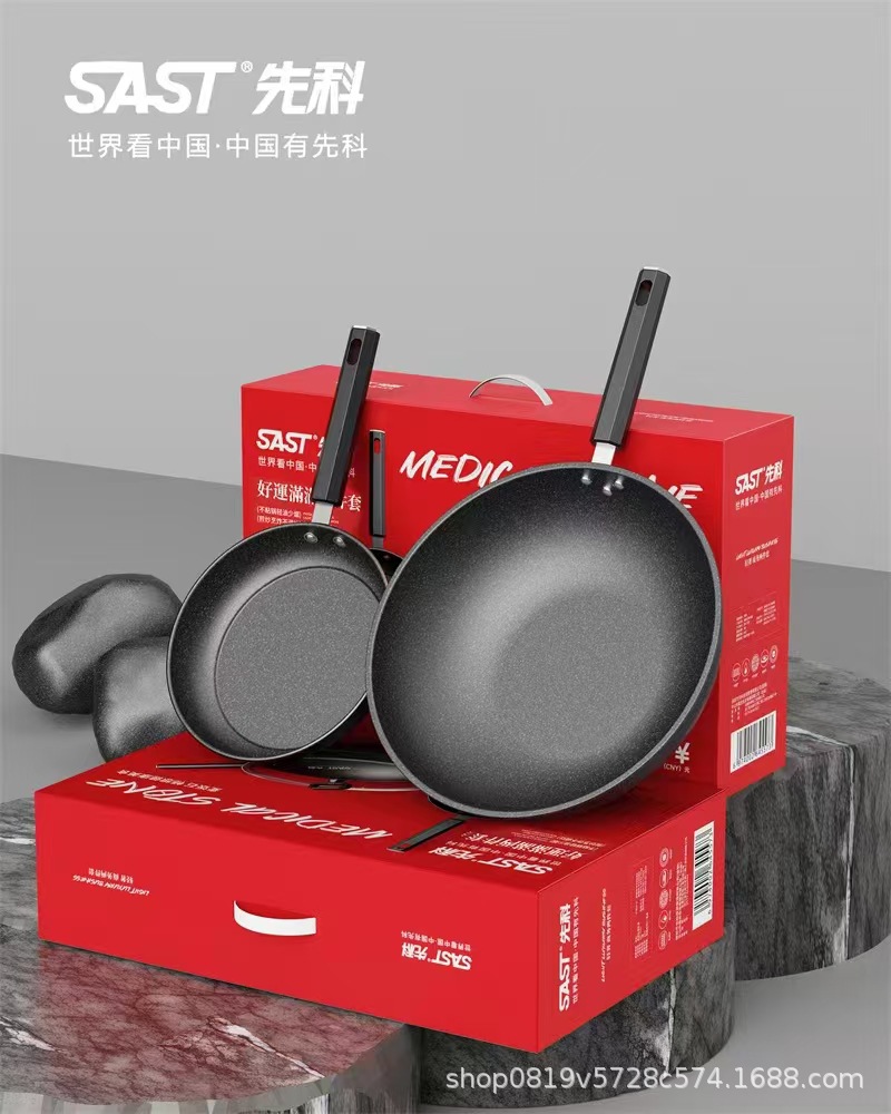 Вок Xianke, антипригарная чугунная кастрюля, плоское дно, набор из двух частей для корпоративного мероприятия, подарок, набор из двух частей