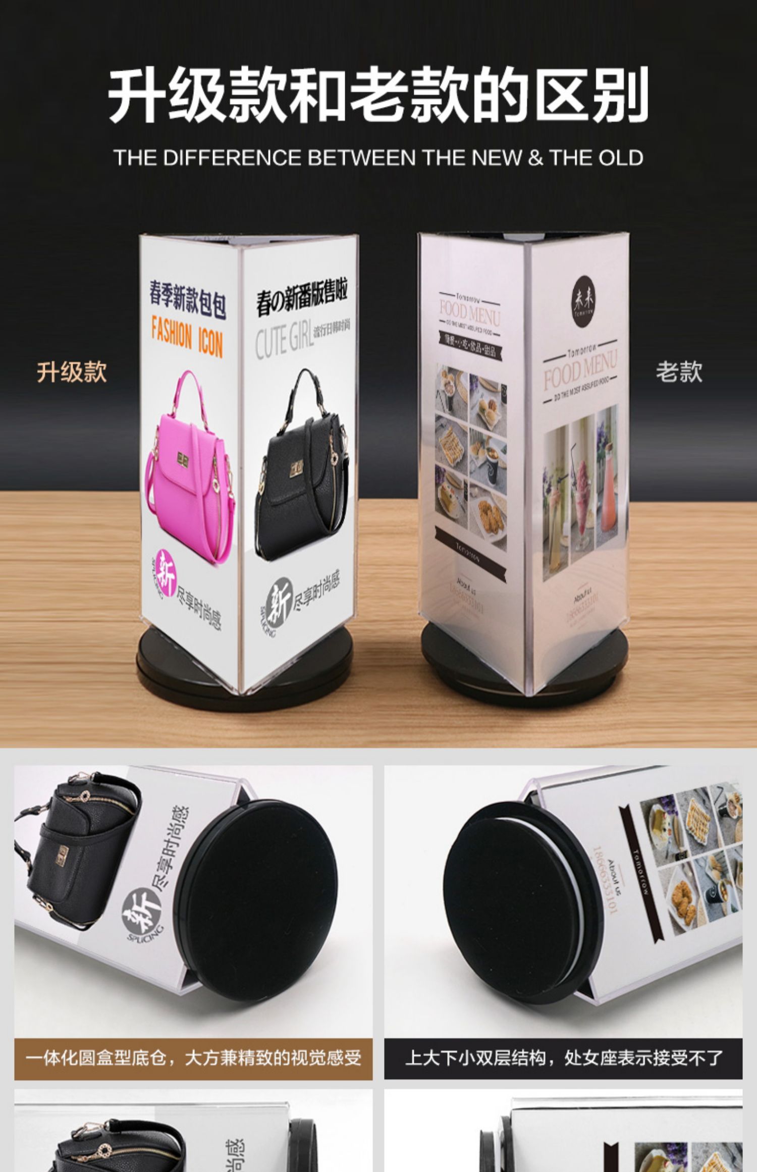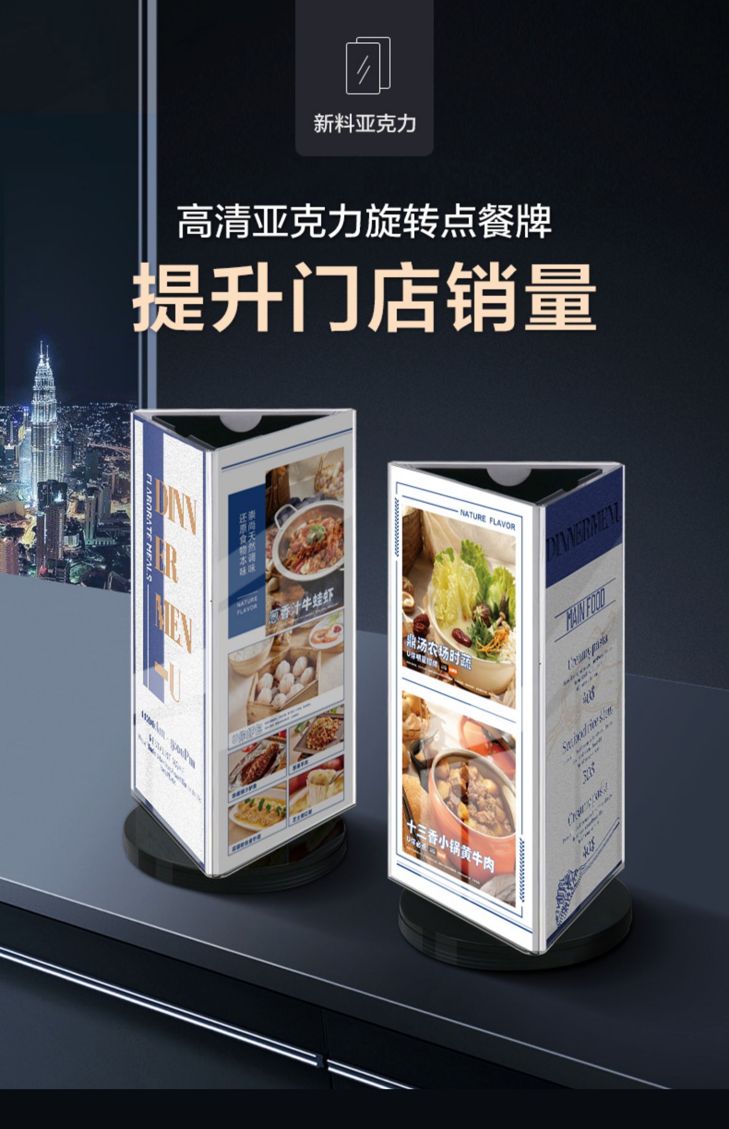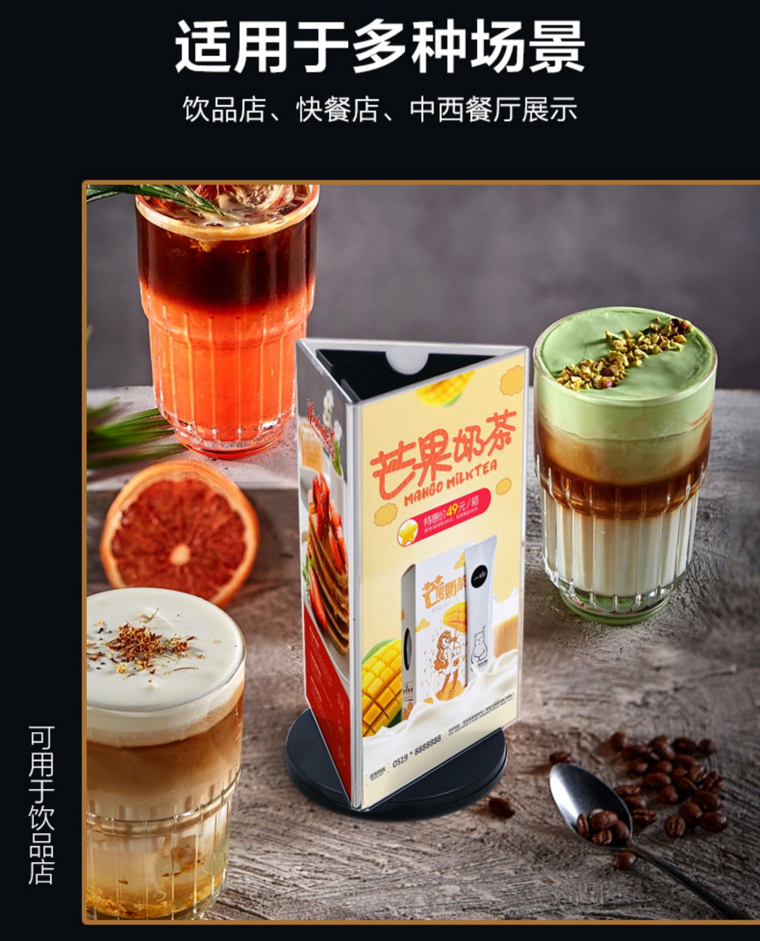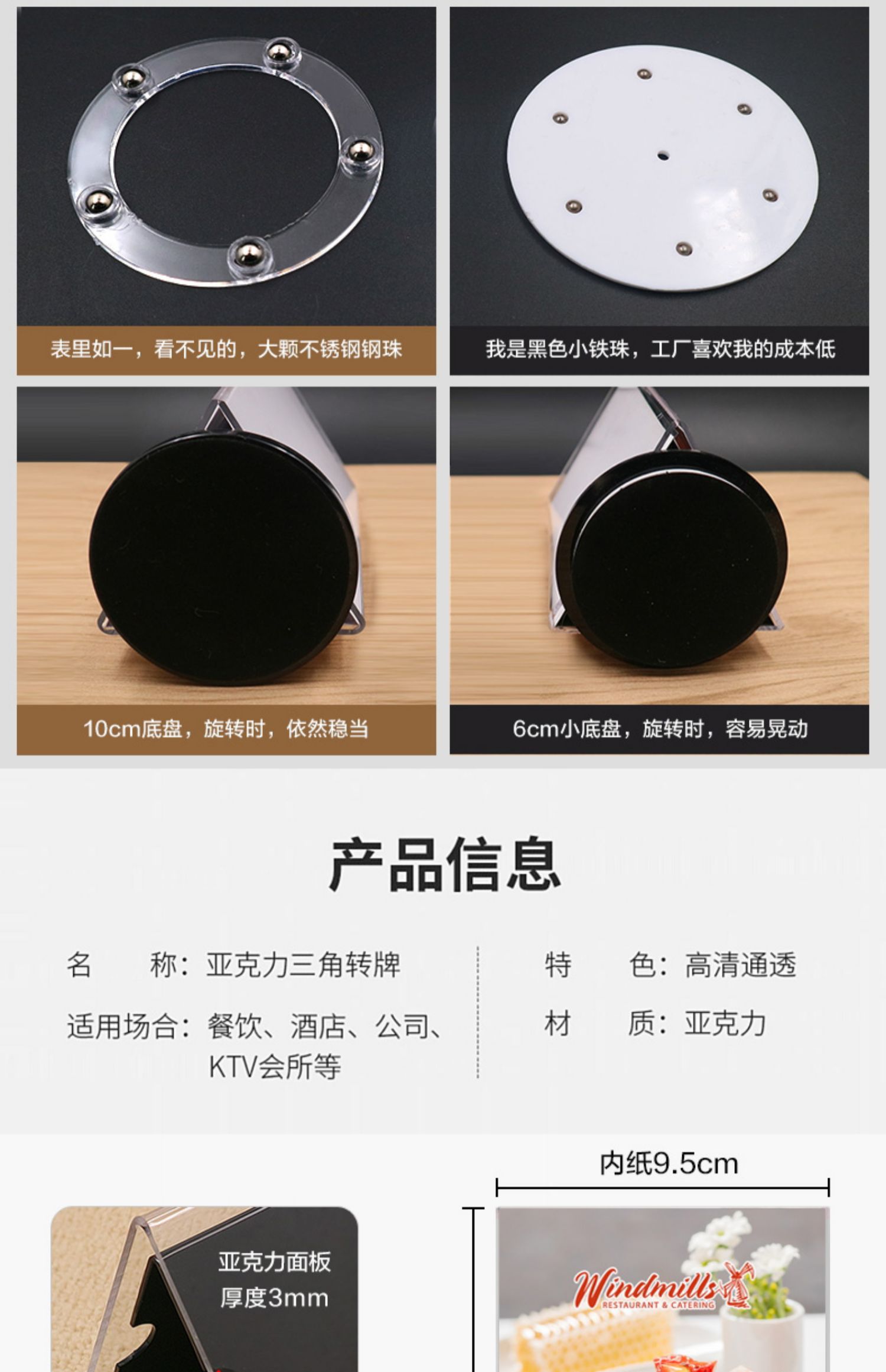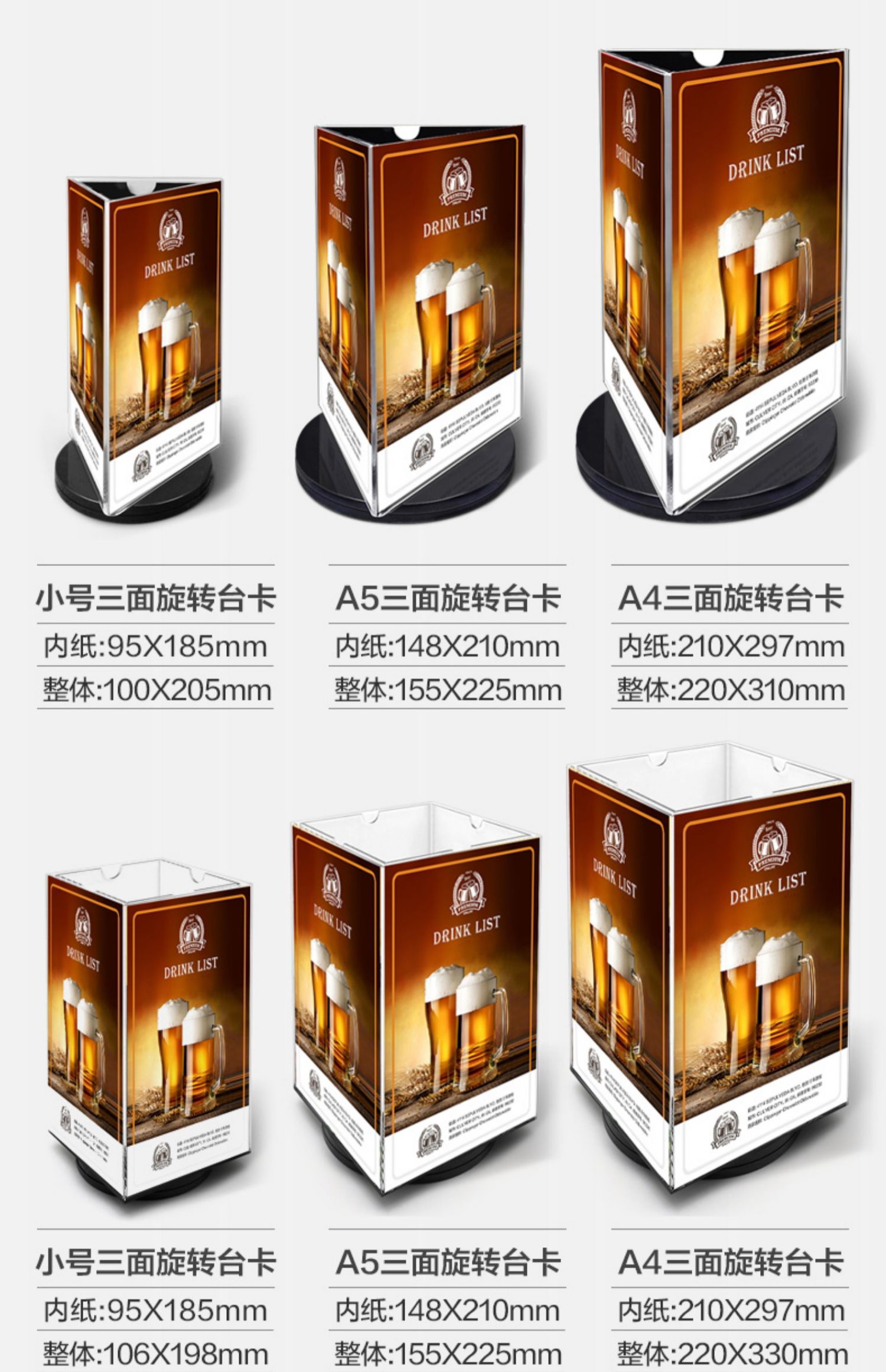 Трехсторонняя вращающаяся подставка для карточек, настольный стенд для ресторанных напитков, акриловая треугольная вращающаяся карточка