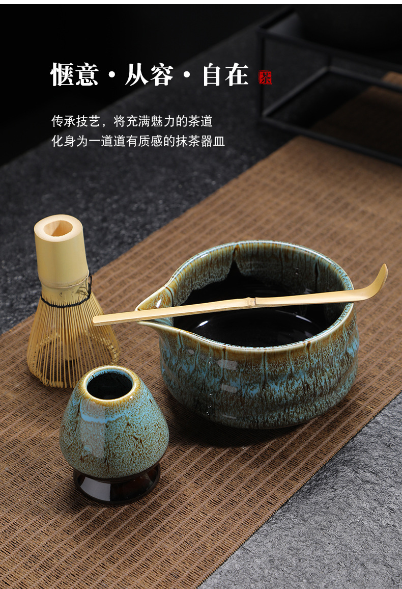 Японский стиль, набор для матча, венчик, чаша, ложка, розовый и зеленый