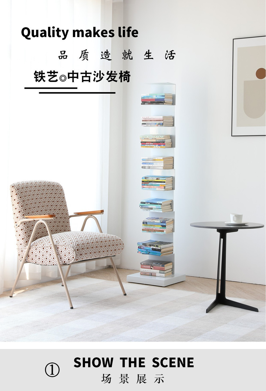 Ретро-стиль, зона отдыха на балконе, маленькие столы и стулья, светлюк, креативный диван, кофейный столик и стул, комплект из трех предметов