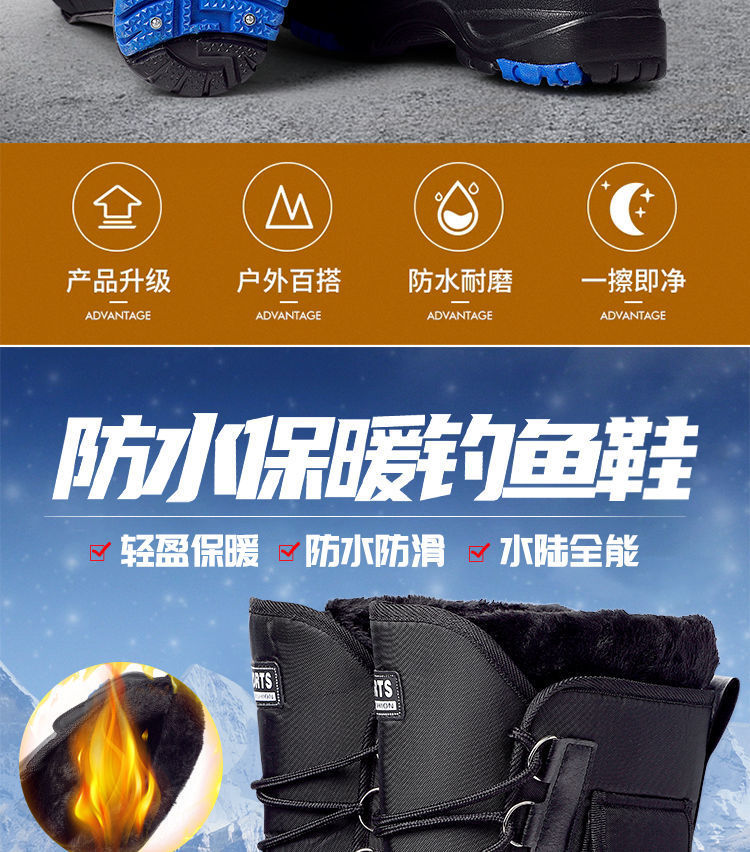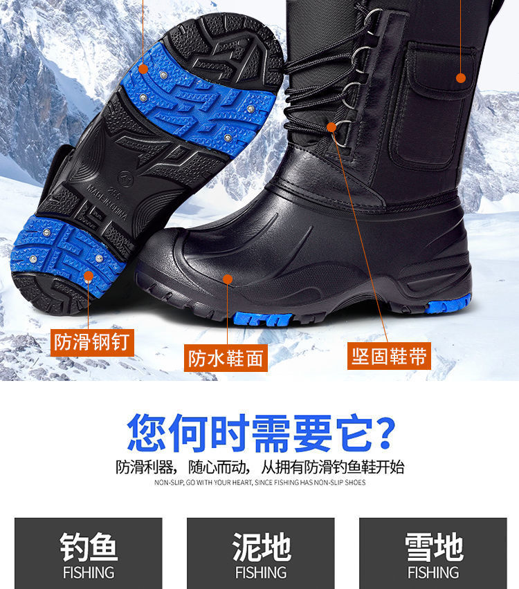 Зимние рыболовные ботинки, утепленные, водонепроницаемые, противоскользящие