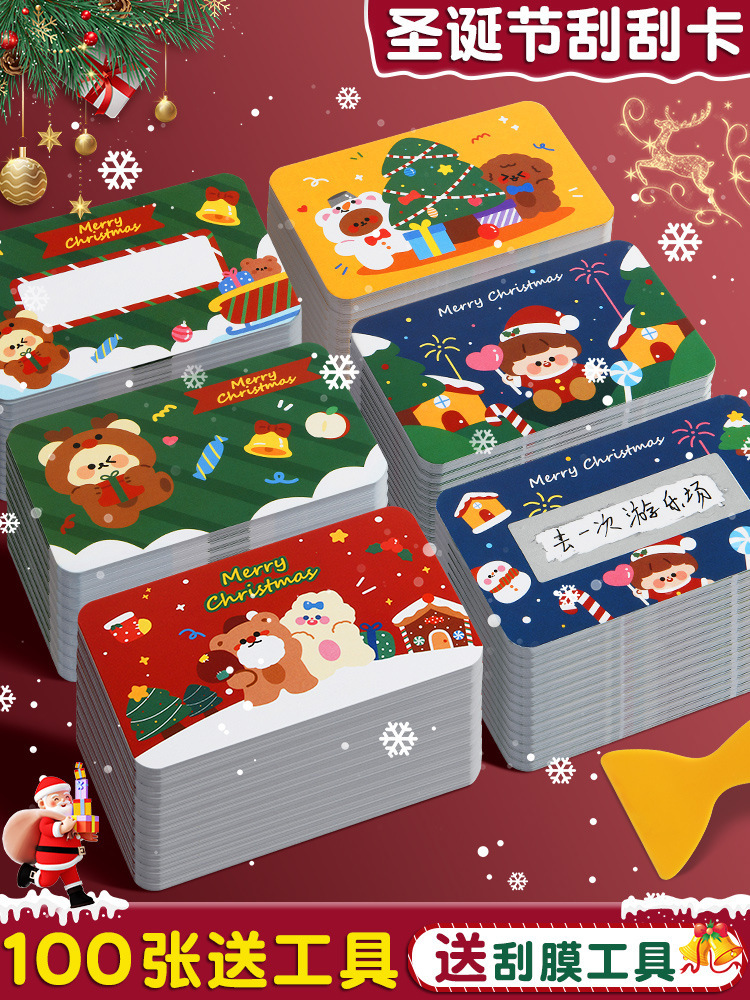 Рождественская скретч-карта печать покрытие скретч-лотерейная карта мультяшный старик печать DIY наградная карта производство