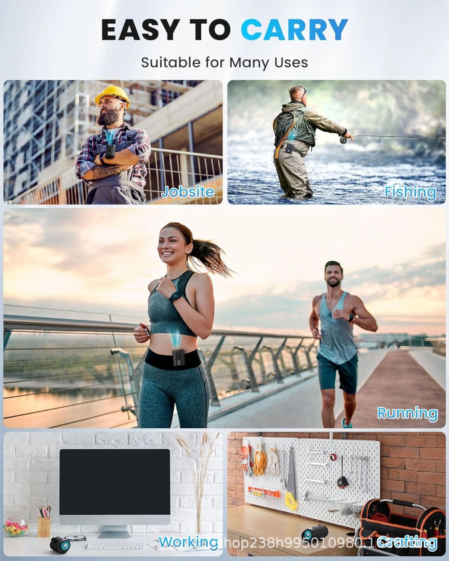 кросс-бодерный портативный вентилятор с 4 скоростями, высокоскоростной, для спорта на улице