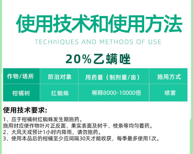 40% акарицид, этоксазола, комбинация акарицидов для цитрусовых и яблонь против красного паука