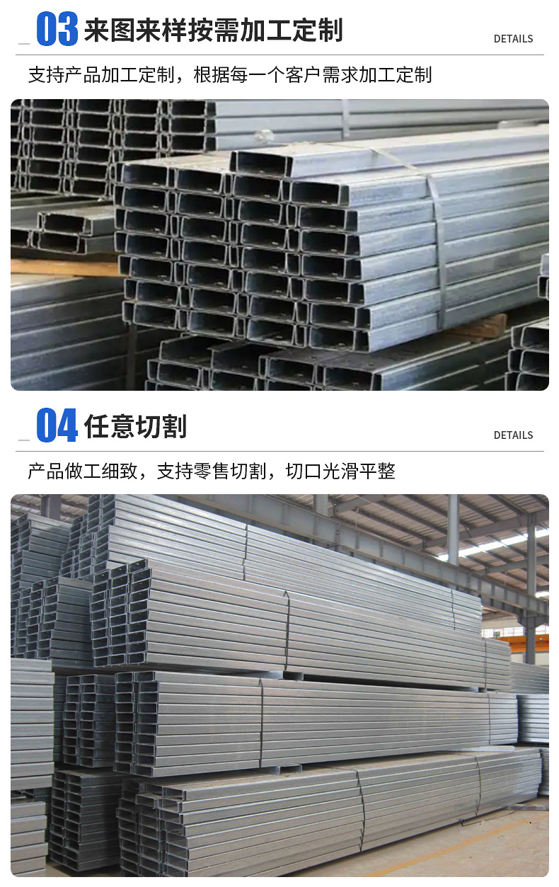 Галванизированная C-образная сталь с высоким слоем цинка C-образный стальной кронштейн горячее цинкование перфорация U-образная стальная канавка Z-образная стальная полоса крыша