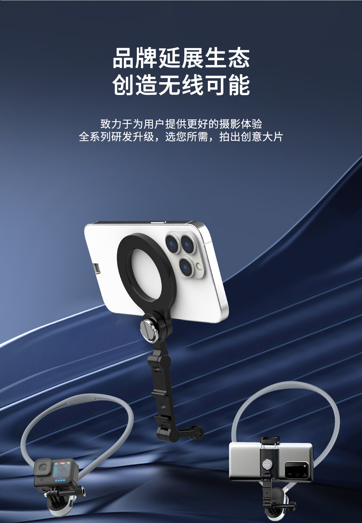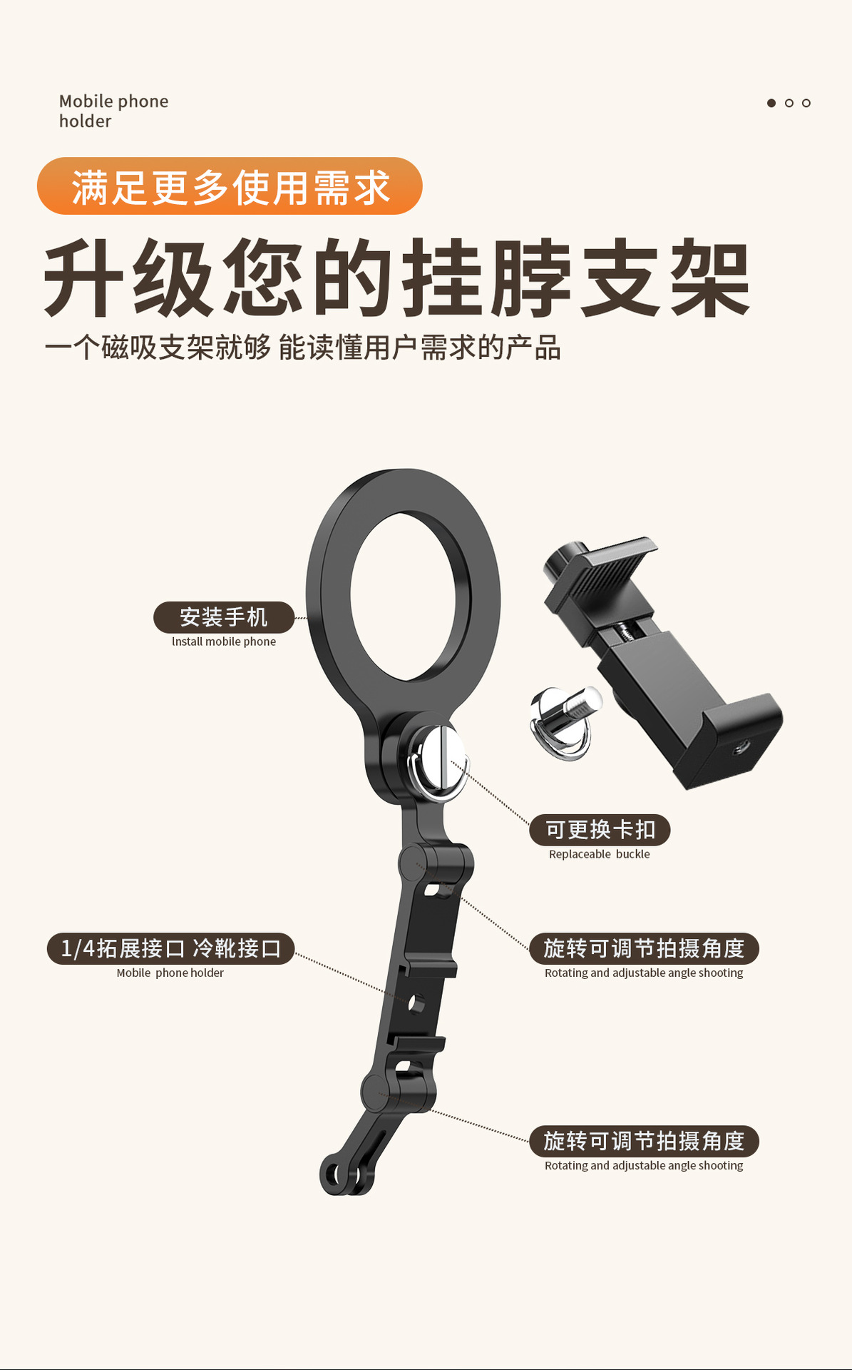 Оптовая магнитная клипса для мобильного телефона висячий шейный держатель универсальная клипса для мобильного телефона горизонтальная и вертикальная съемка холодные ботинки регулируемая живая самосъемка
