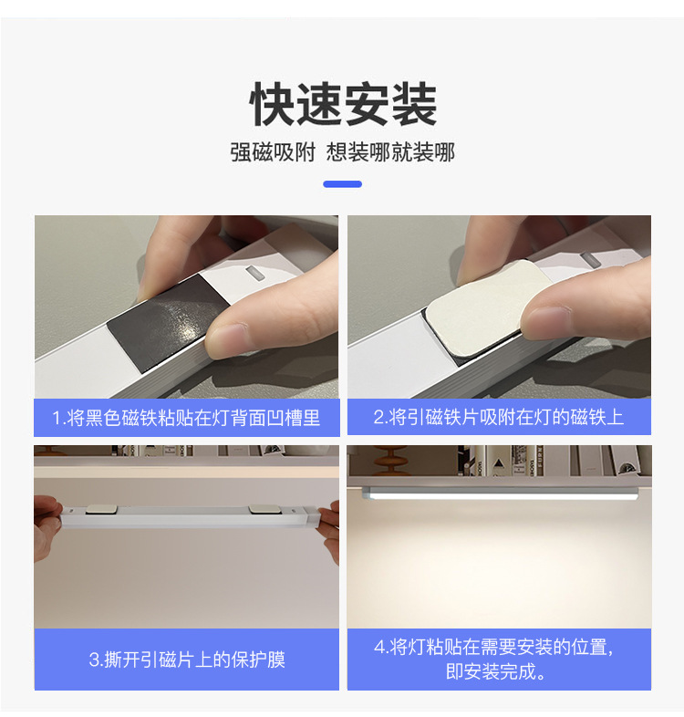 LED сенсорный светильник, USB зарядка, магнитный светильник для шкафов