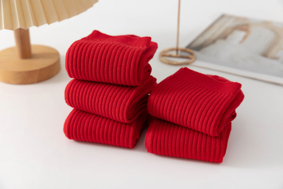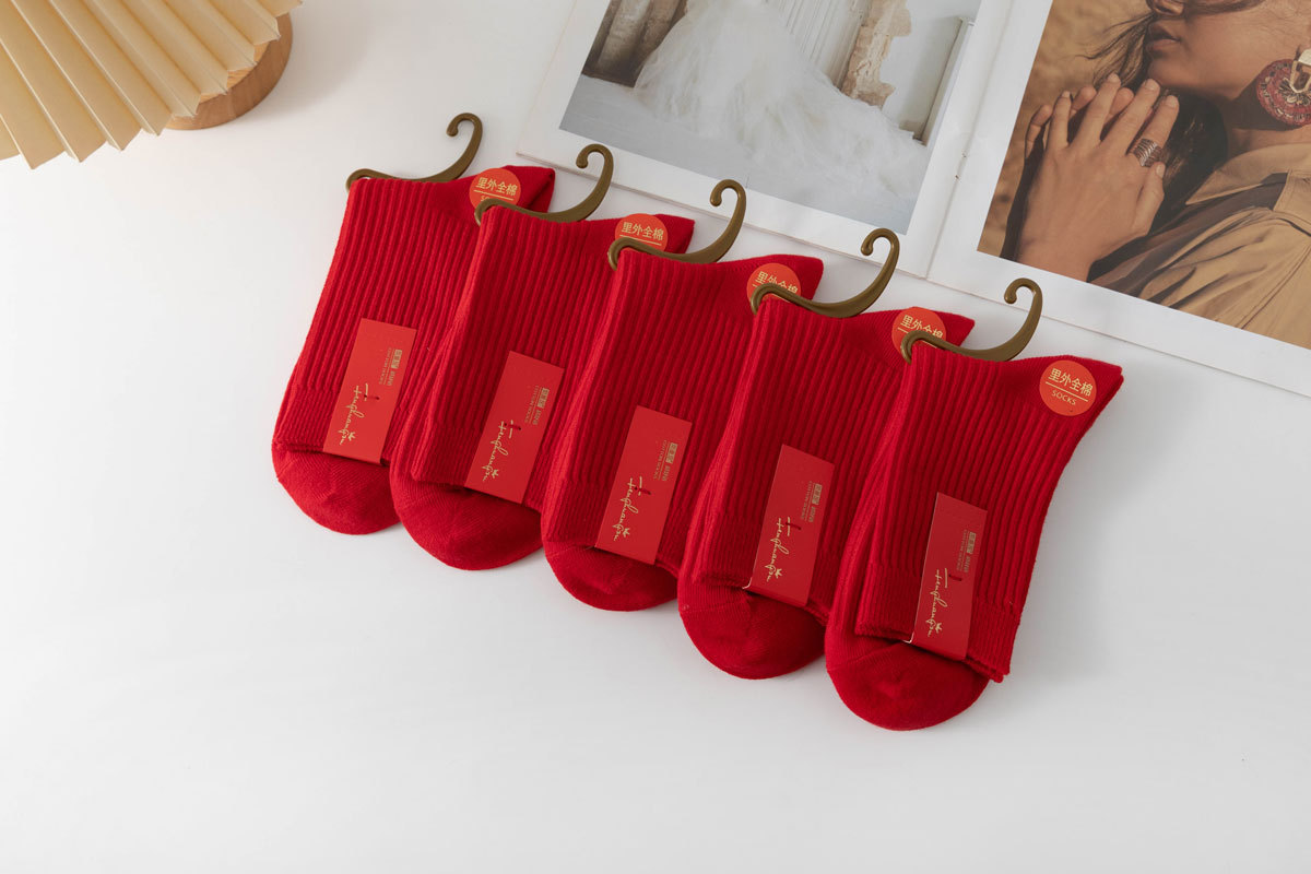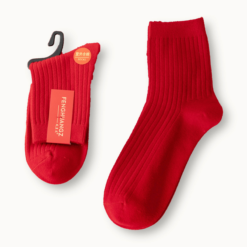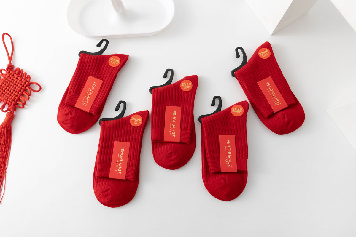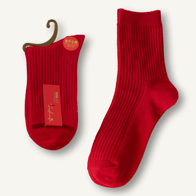 Красные хлопковые носки для мужчин и женщин, впитывающие пот, дезодорирующие, с вышивкой, оптовая продажа