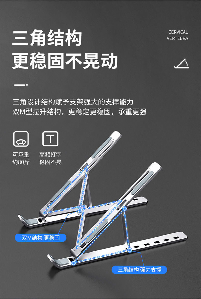 1 Laptop stand aluminum alloy desktop heightening bracket satchelfoldableadjustable portable radiator bottom stand