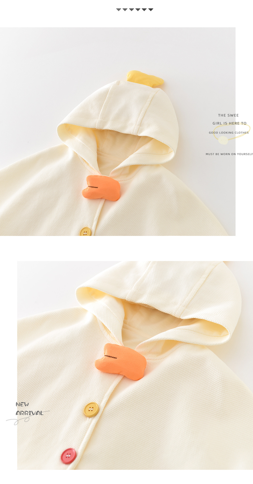 Одежда Yueji, весенние наряды для младенцев, карнавальные вещи, новорожденные 0-3 года, ветронепроницаемый плащ с капюшоном, куриный плащ 51106