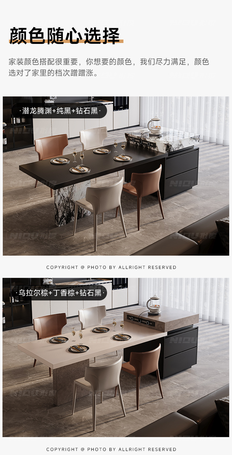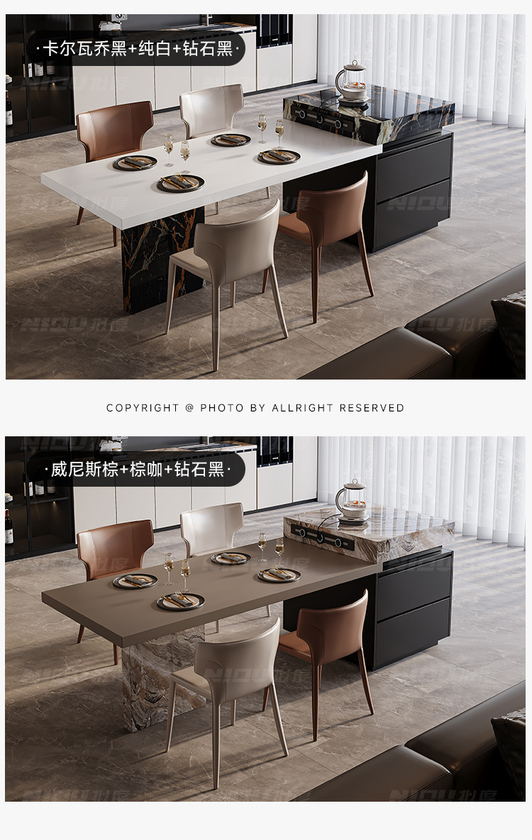 Раскладной обеденный стол с интегрированной каменной плитой, камень класса люкс, итальянский минимализм, высококлассный для малогабаритной квартиры, на заказ