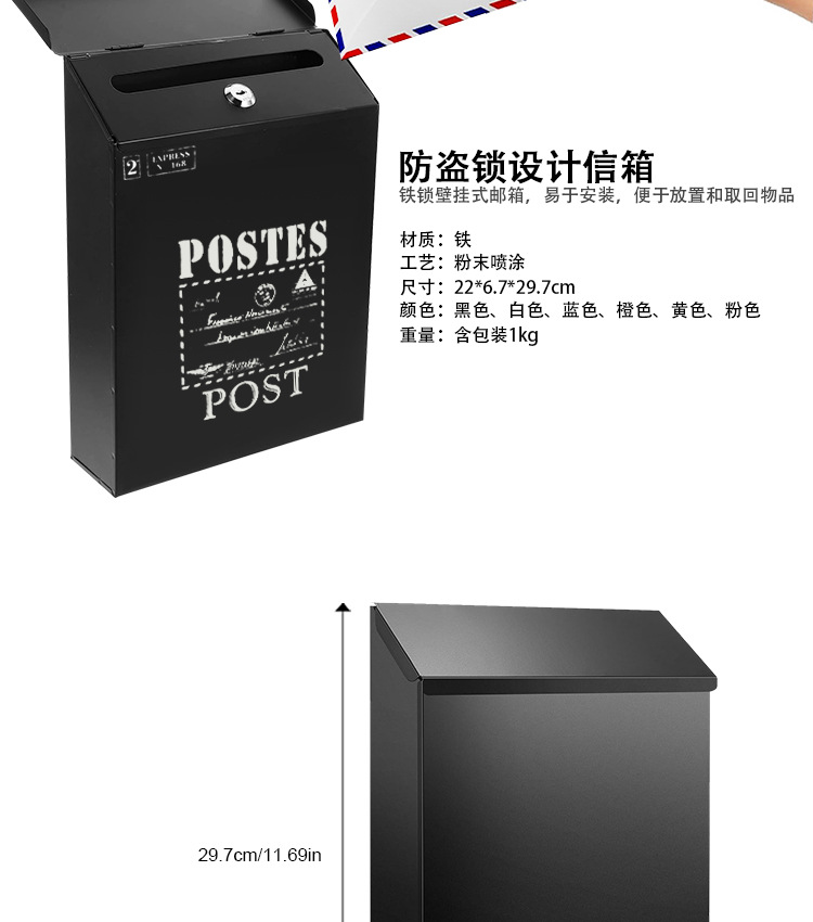 Кросс-бордерный популярный почтовый ящик с замком для двора деревенский стиль железный простой настенный почтовый ящик многоцветный на выбор