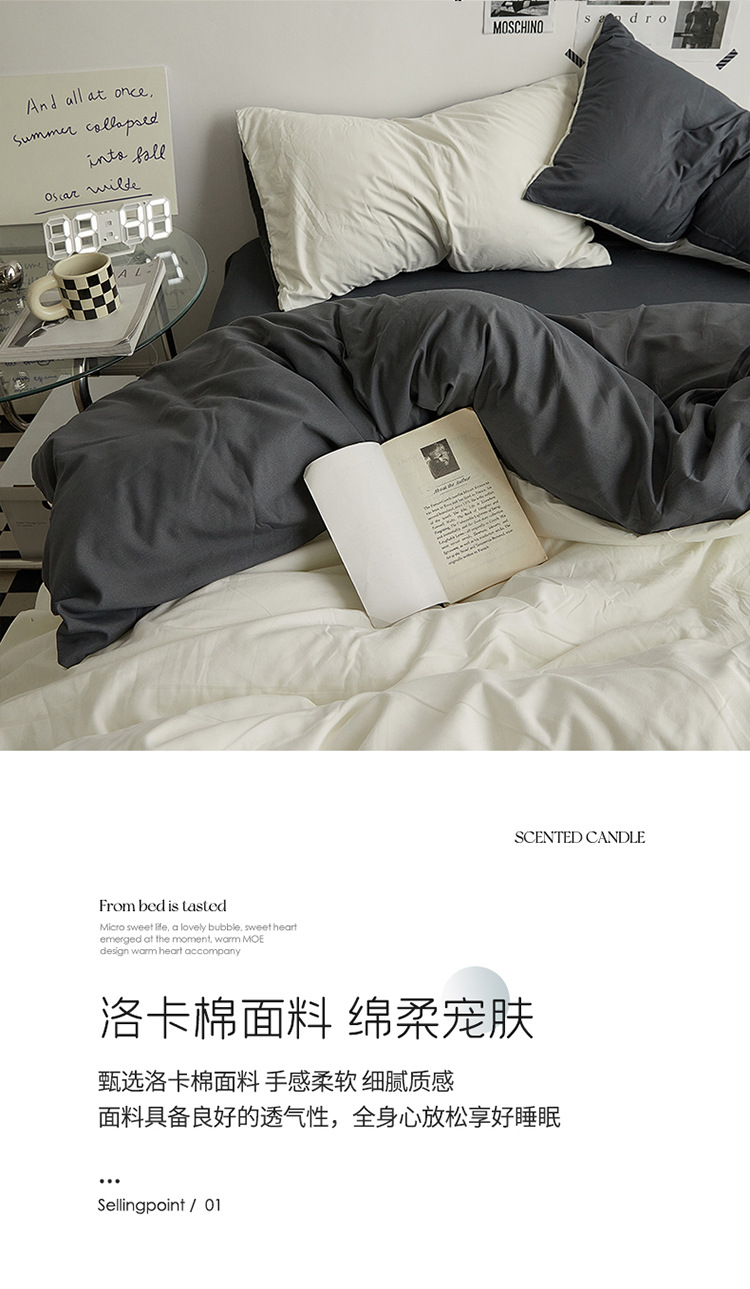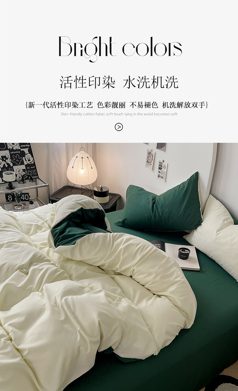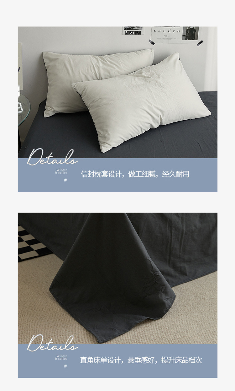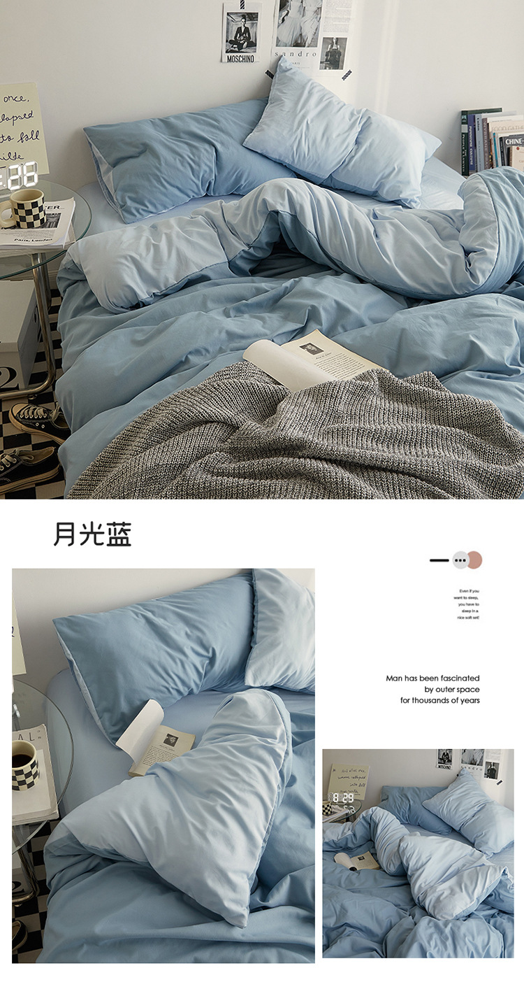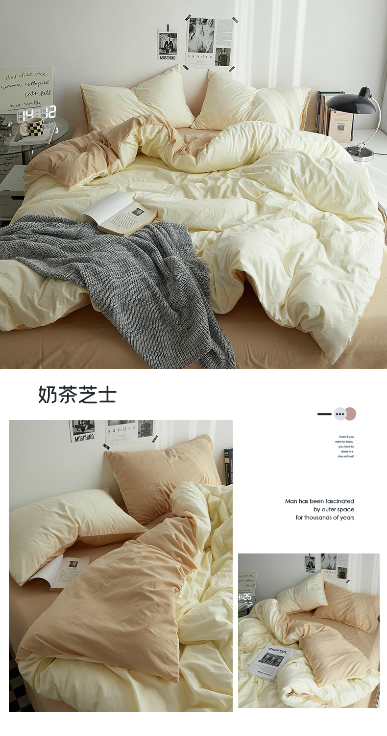 Многофункциональный комплект постельного белья, комплект из четырех предметов из стирки хлопка, однотонный, простой трёхпредметный комплект