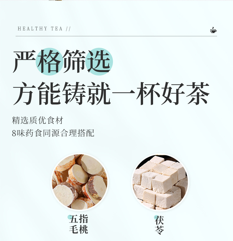 ![]() | Wuzhi maotao poria tea 80g (8g*10 bags) | ¥10.8 / ≈ 131 ₽ | 2 | 5684728316409 |