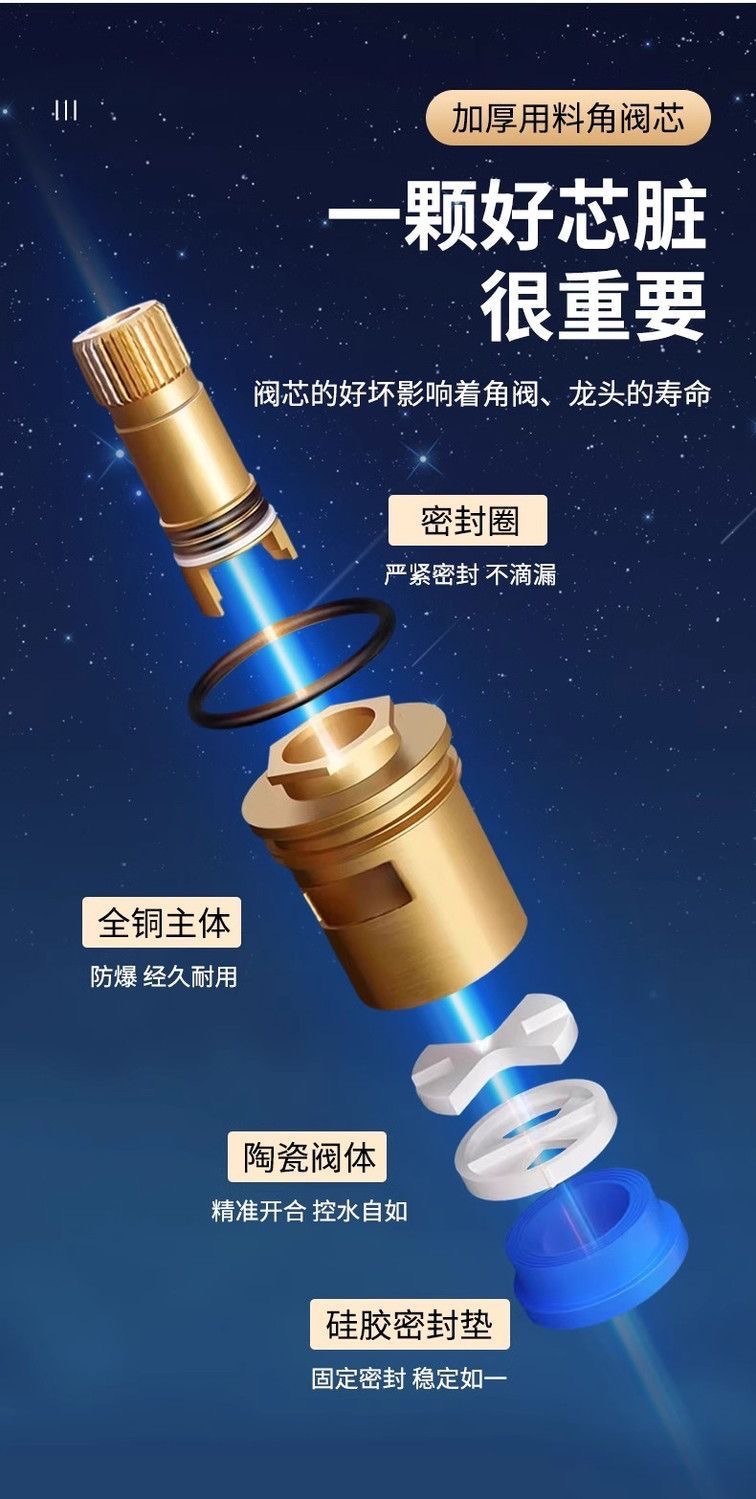 Универсальный сердечник крана из меди, 4 точки, быстрого открытия, треугольный клапан, керамические аксессуары для холодной и горячей воды