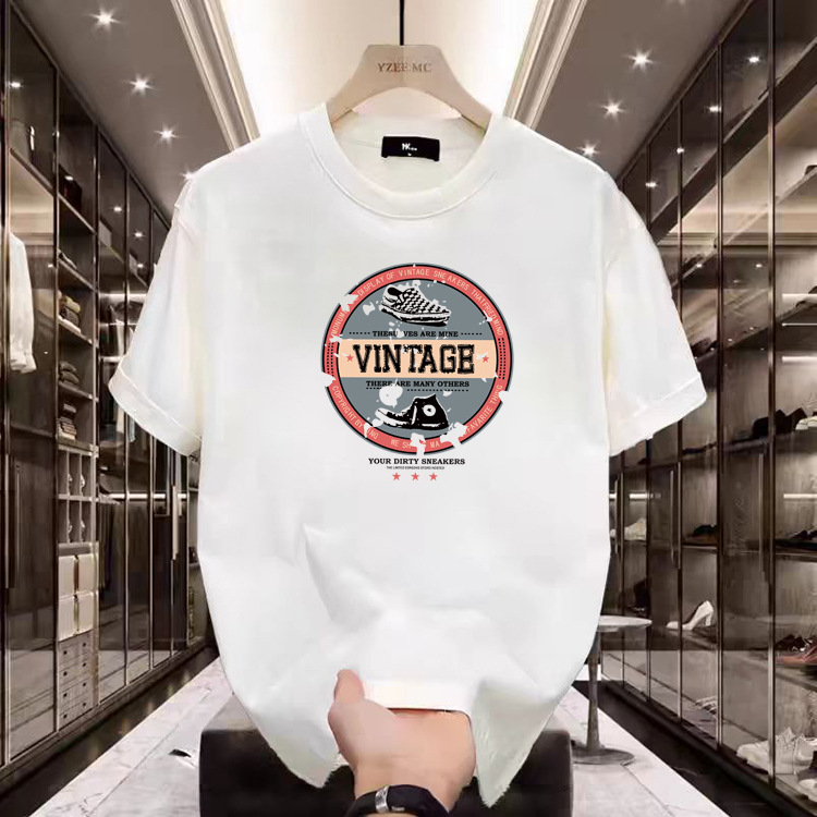 высококачественная футболка с коротким рукавом хлопковая мужская летняя 2025 новая свободная базовая рубашка интернет модная марка печать партия