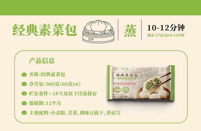 Вегетарианские паровые булочки Songyuelou, классические, быстро замороженные, с бобовой пастой, полупродукты