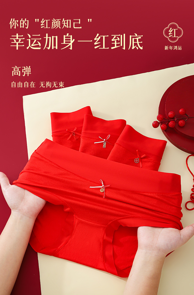 Фабричное модальное нижнее белье, год змеи, красные трусики средней талии, высокоэластичные, комфортные, бесшовные