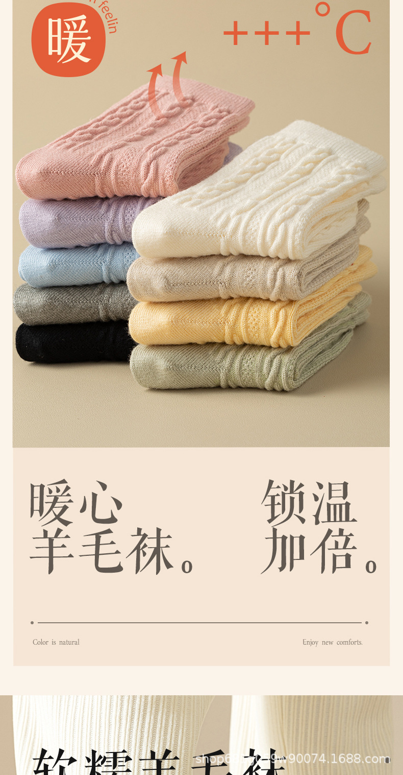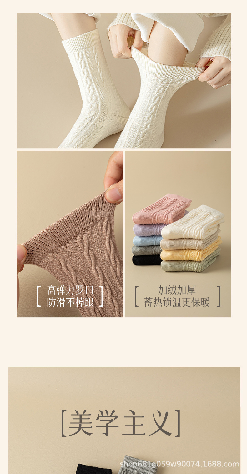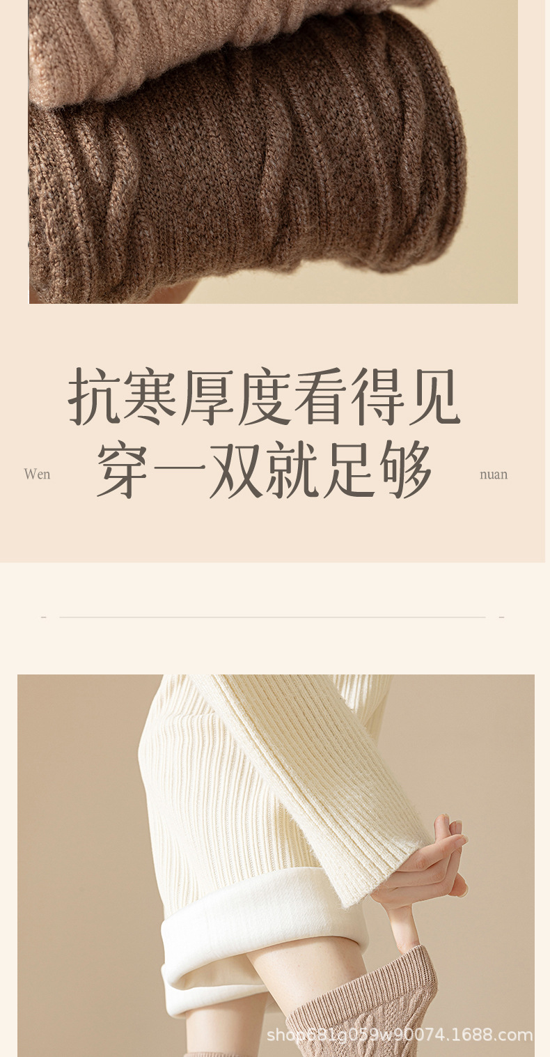 Кашемировые носки для женщин, осень и зима, до середины икры, с флисовой подкладкой, утолщенные, теплые, однотонные