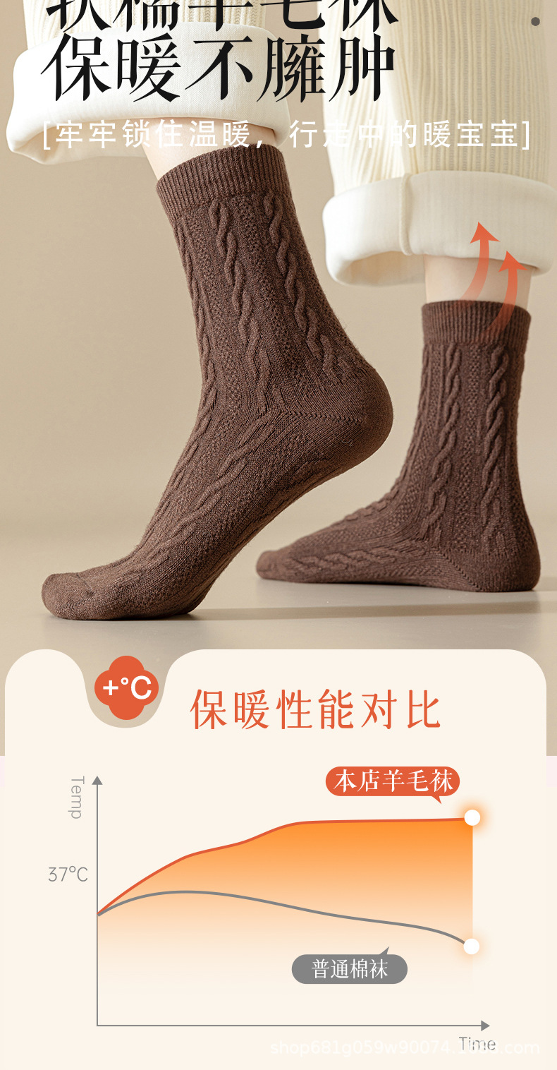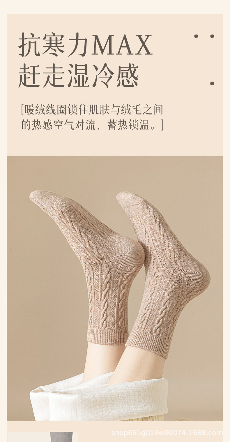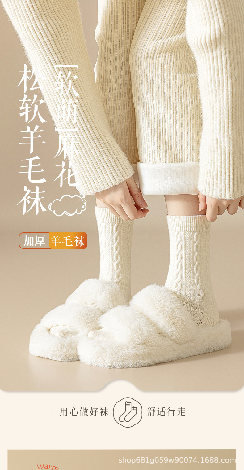 Кашемировые носки для женщин, осень и зима, до середины икры, с флисовой подкладкой, утолщенные, теплые, однотонные