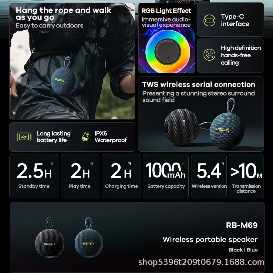 Популярная портативная беспроводная колонка для спорта на открытом воздухе, водонепроницаемая, мини, с басом