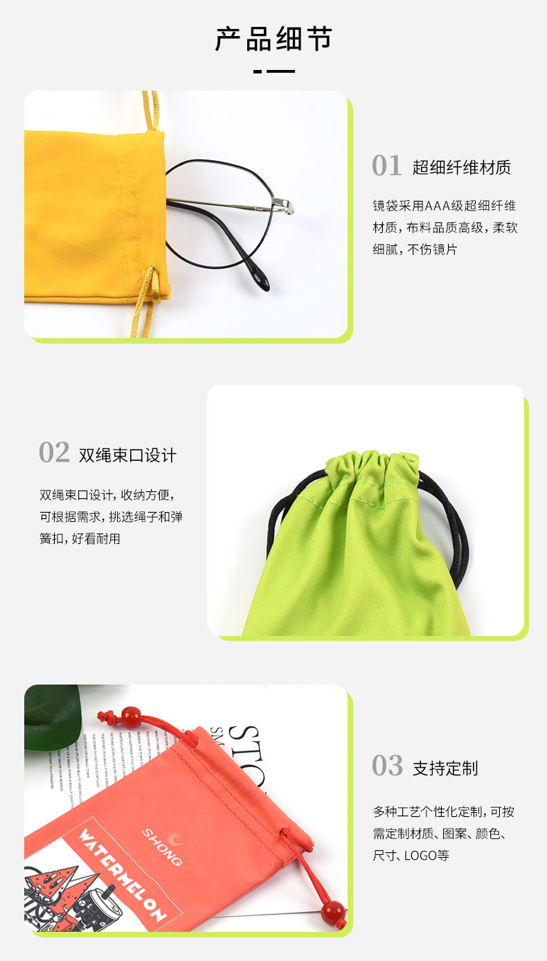Сумка для очков из микрофибры с двойной веревкой, сумка для хранения часов и ювелирных изделий, индивидуальный логотип от производителя