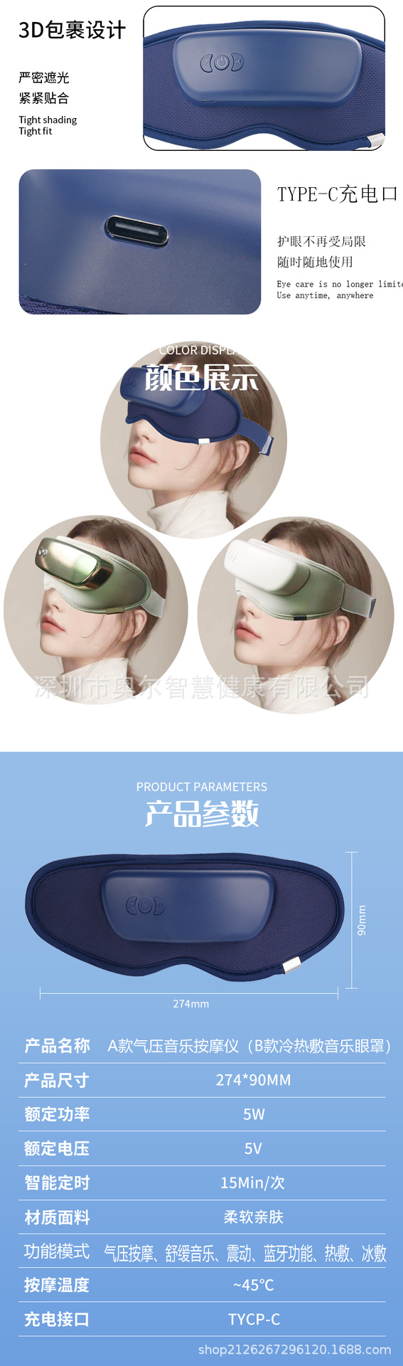 Массажер для глаз с музыкой, интеллектуальный метр сна, защитник глаз с воздушным давлением, голосовой интеллект, большой объем памяти, звуки природы