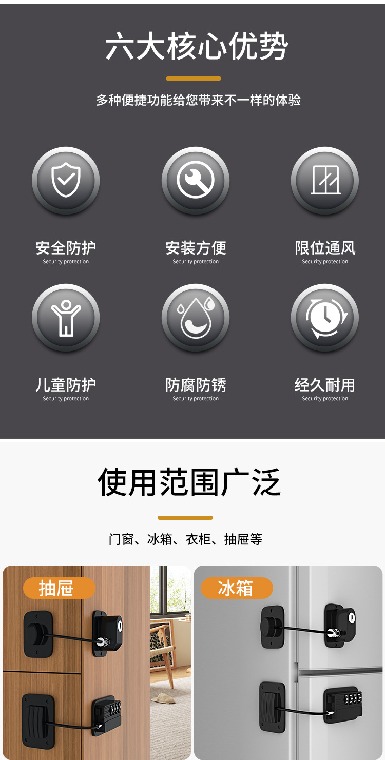Область применения Window lock, safety limiter, children's lock, sliding door lock, drawer lock