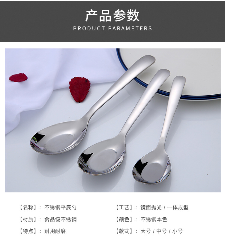 Ложка с плоским дном из нержавеющей стали, утолщенная, для супа, домашняя, кухонная, отельная, креативная маленькая ложка