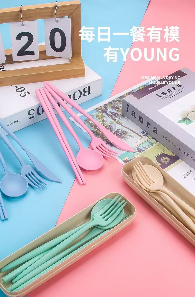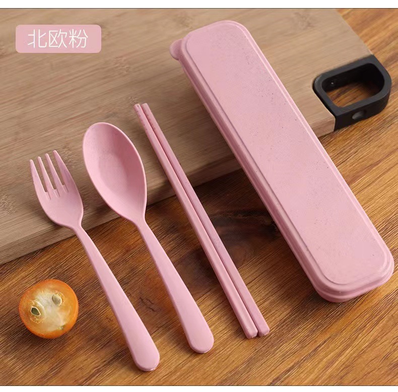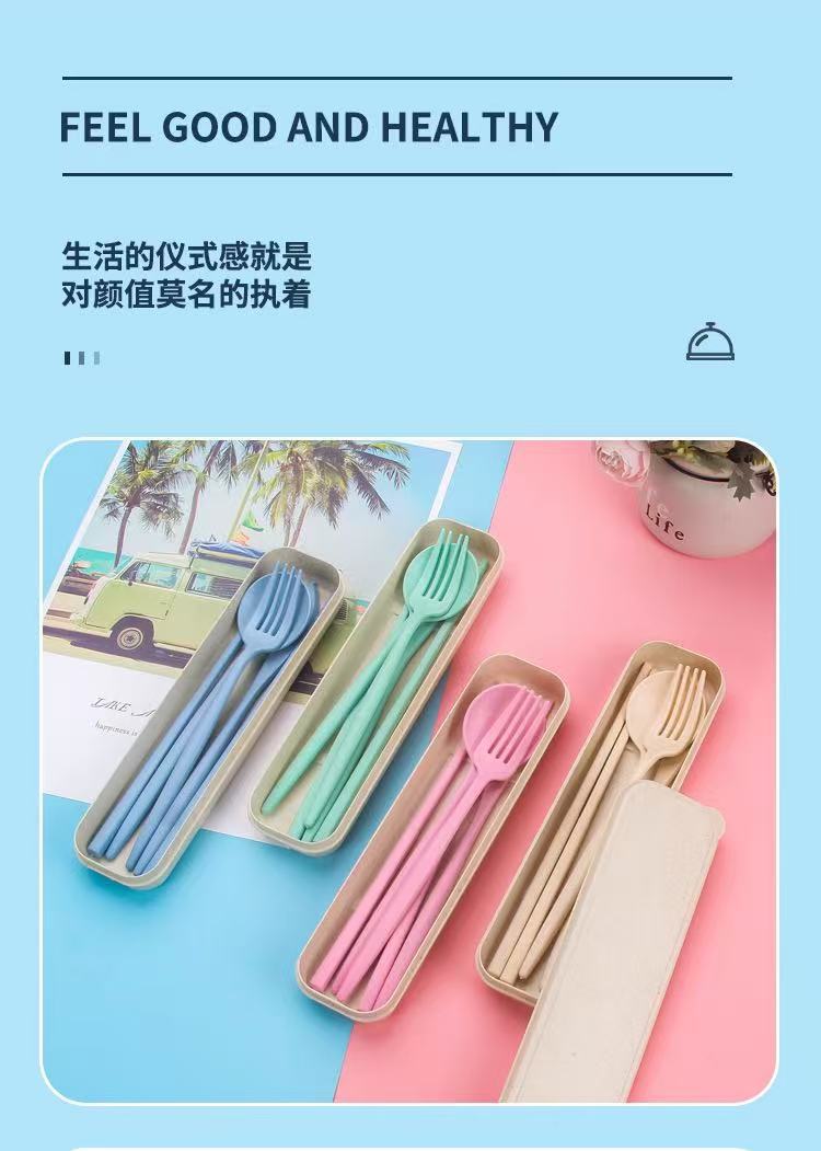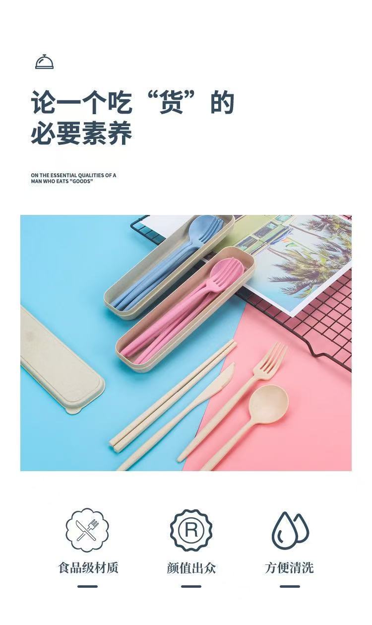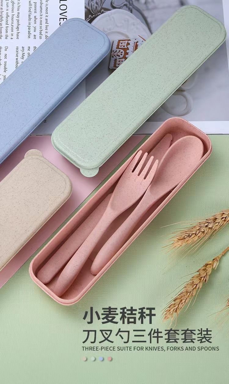 Удобный набор столовых приборов из пшеничного волокна: нож, вилка и ложка, 3 предмета, пластиковые столовые приборы, простой коммерческий подарок