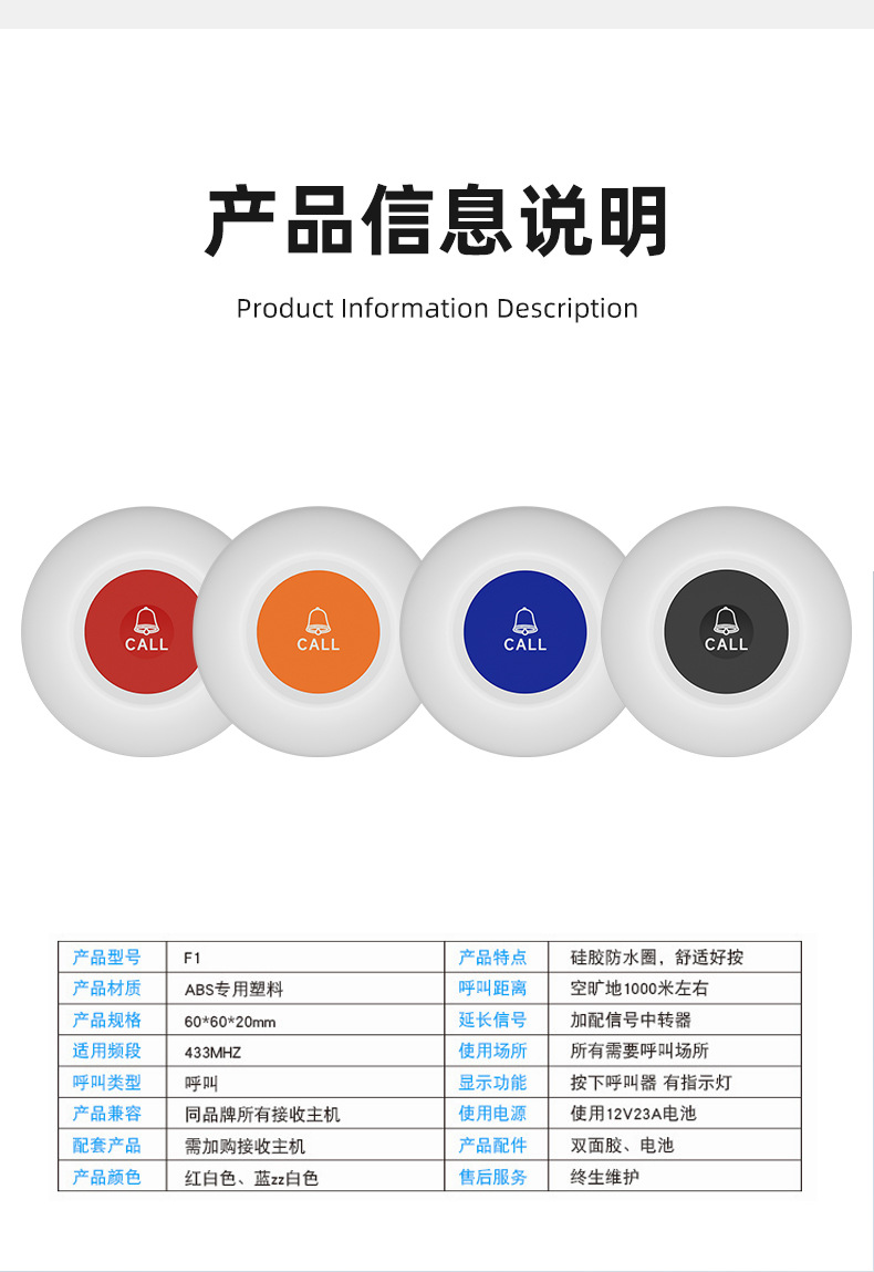 Беспроводной пейджер, водонепроницаемая кнопка, экстренный вызов для пожилых в доме престарелых