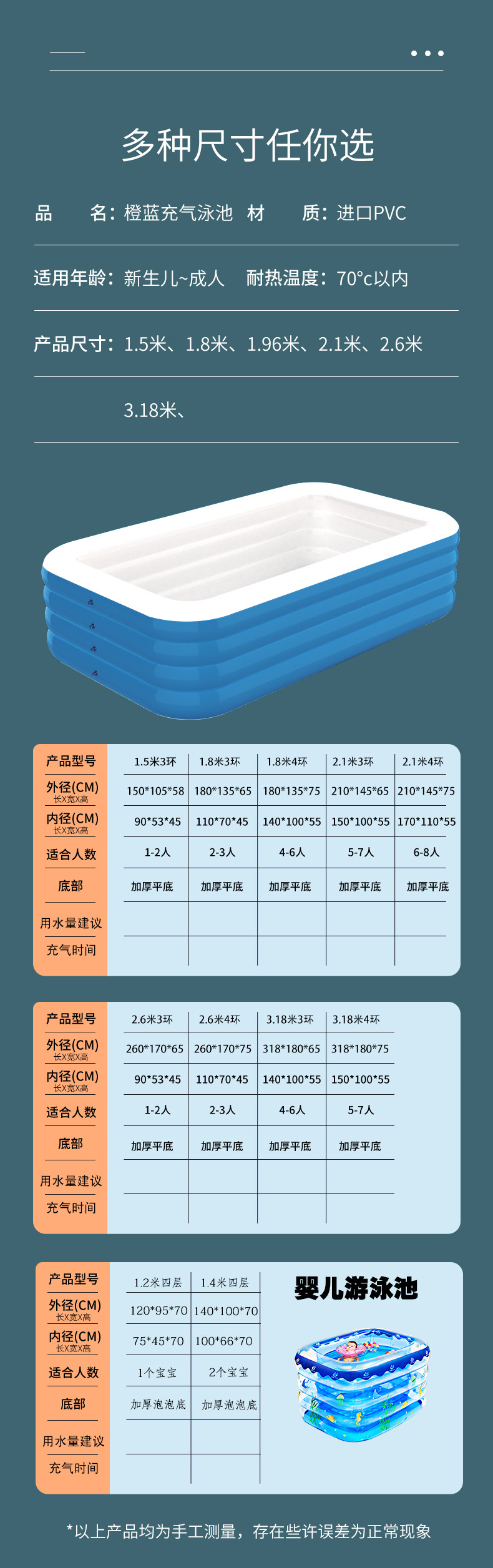 Надувной бассейн оптом, новый синий и белый, 3 метра, 3 слоя, прямоугольный для детей и взрослых