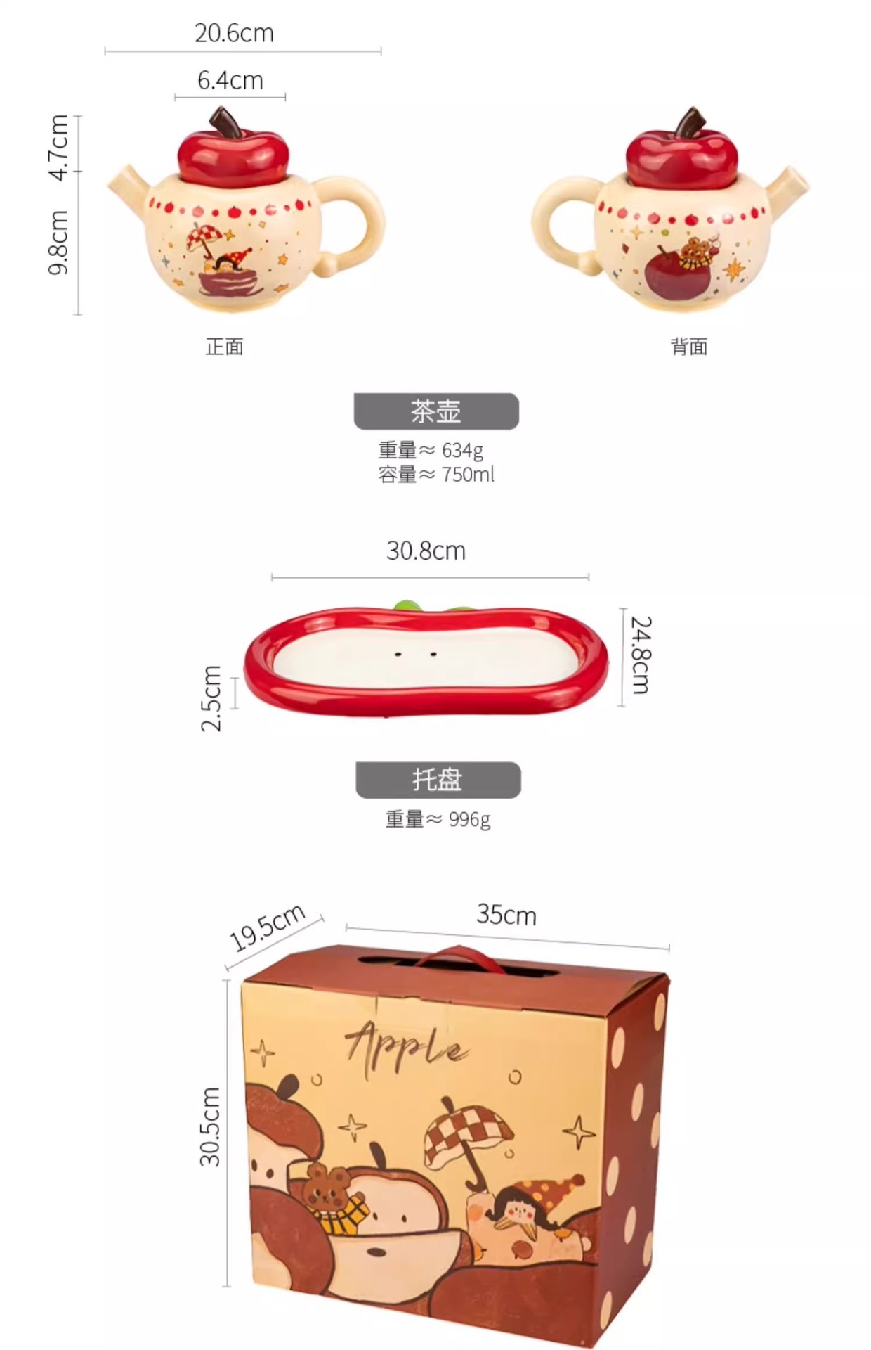 ![]() | Small package apple water set 1 pot 4 cups 1 tray | 800ml | ¥99.0 / ≈ 1 204 ₽ | 4071 | 5860018570891 | |