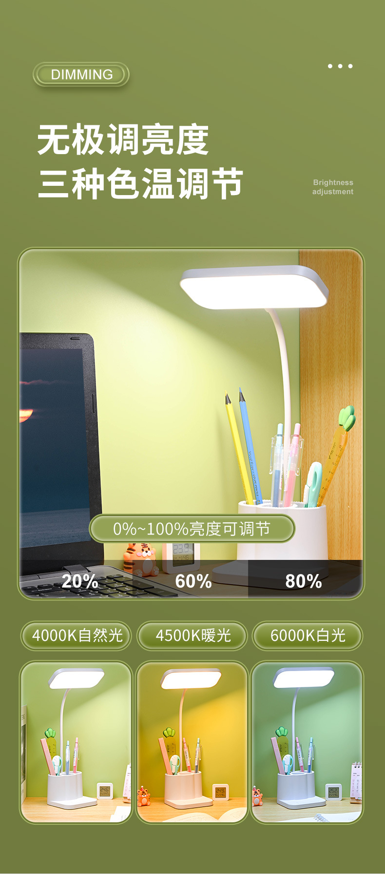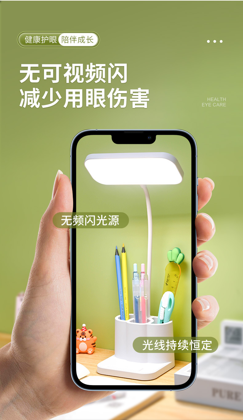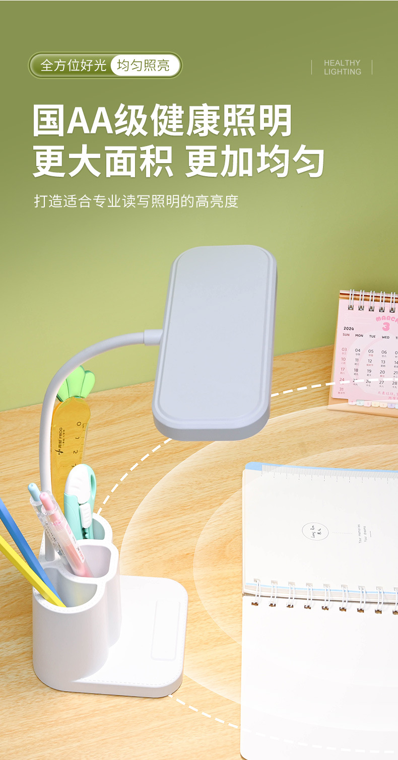 Настольная лампа для защиты глаз, светодиодная, подставка для ручек, защита зрения детей, лампа для чтения в общежитии