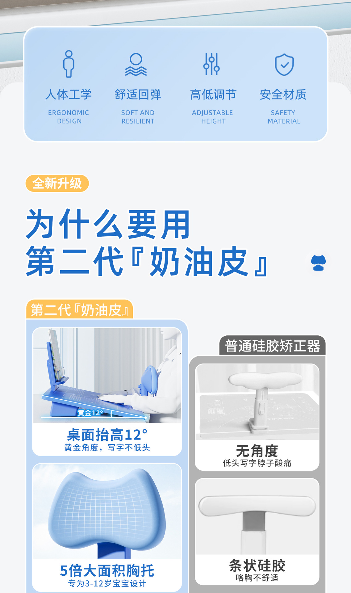 Корректор осанки для детей, антикосоглазный, интегрированная подставка для чтения и письма