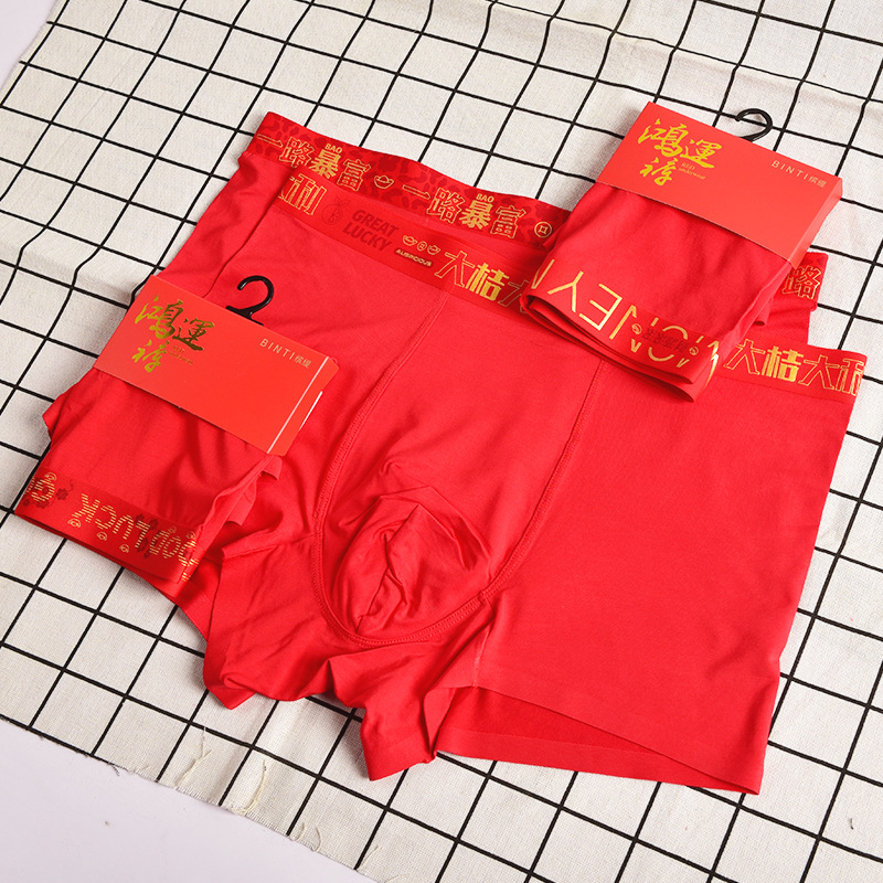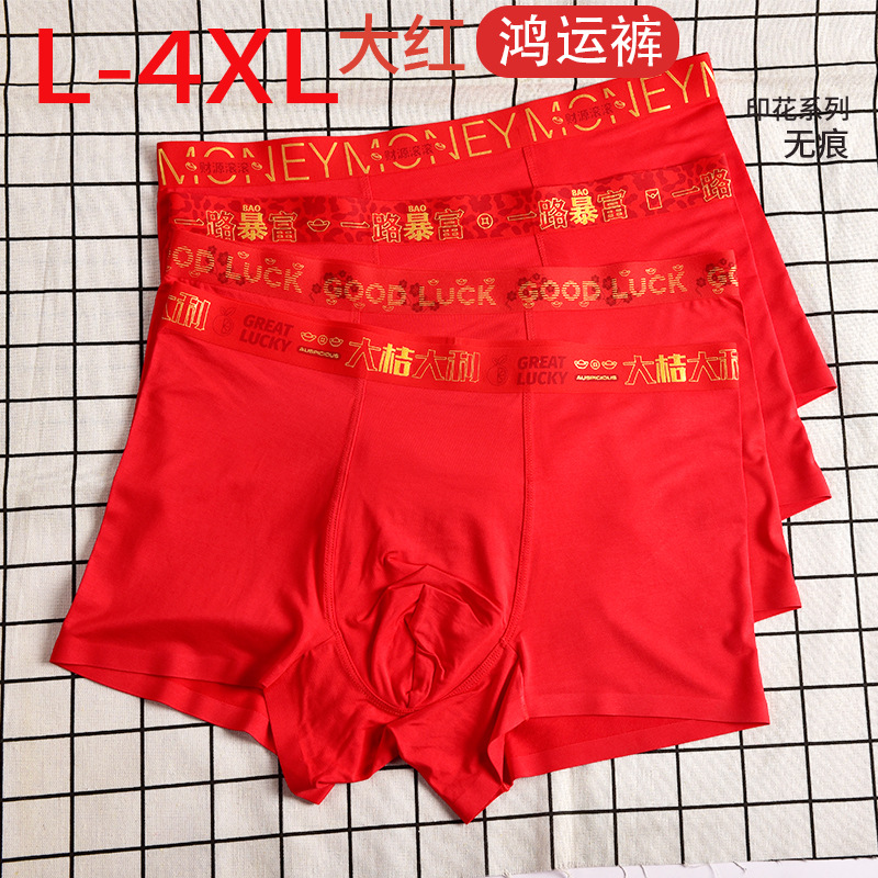 Мужские боксёры на год Дракона, большие красные, модал, бесшовные, шелковые, антибактериальные, праздничные