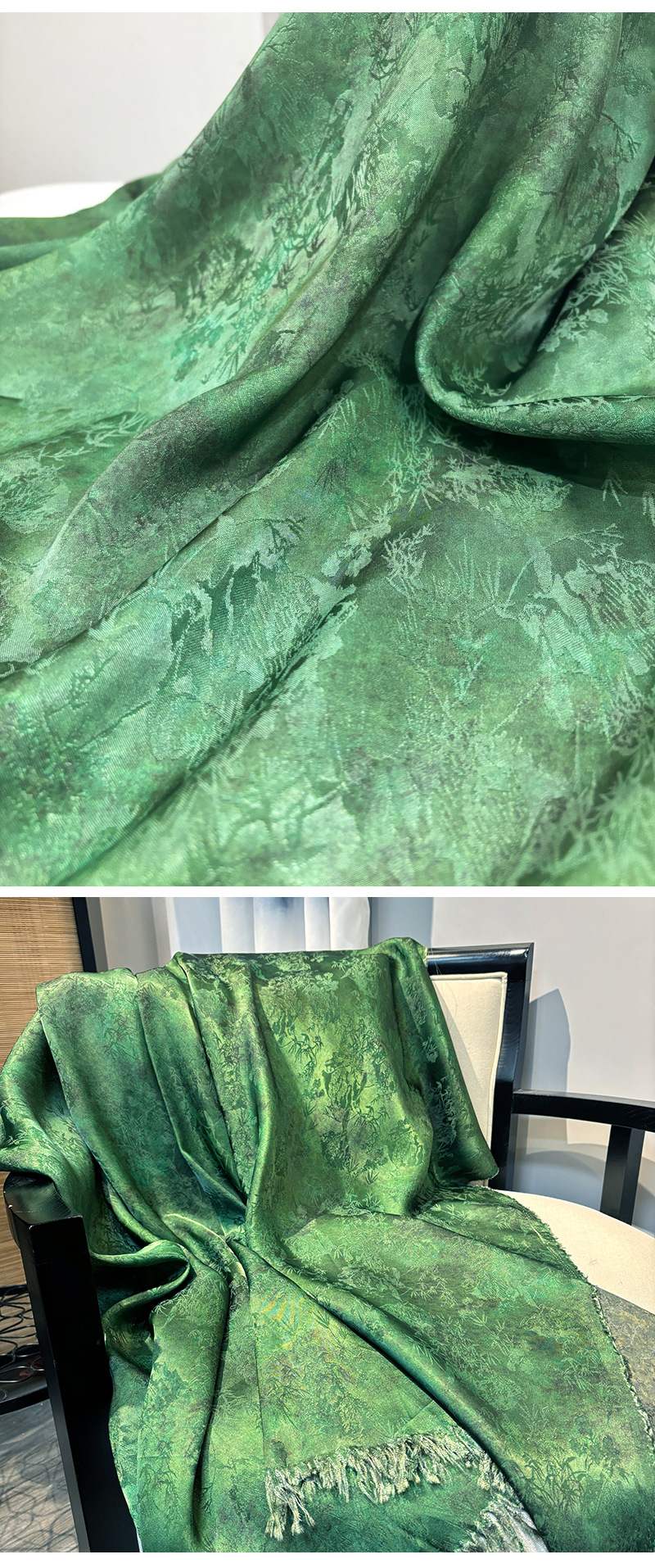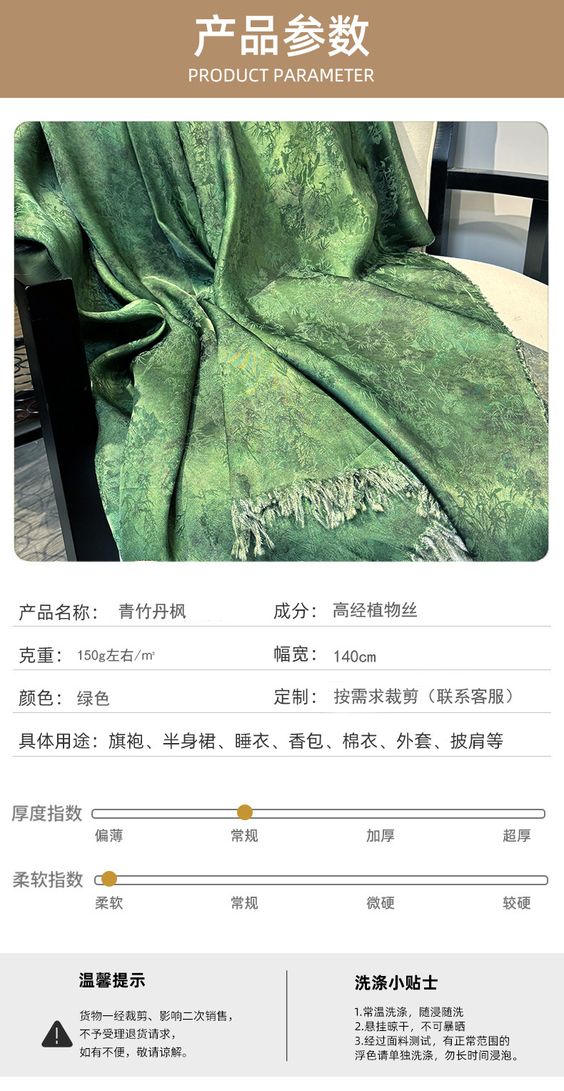 Жаккардовая ткань с узором зелёного цветка, чонгсам, ткань из шелка