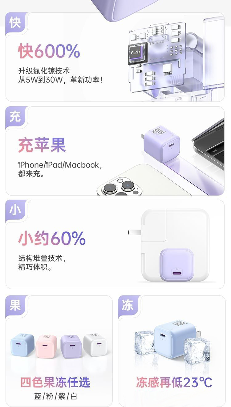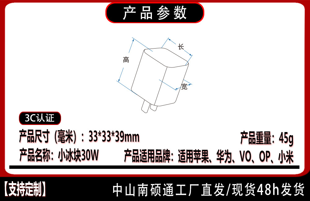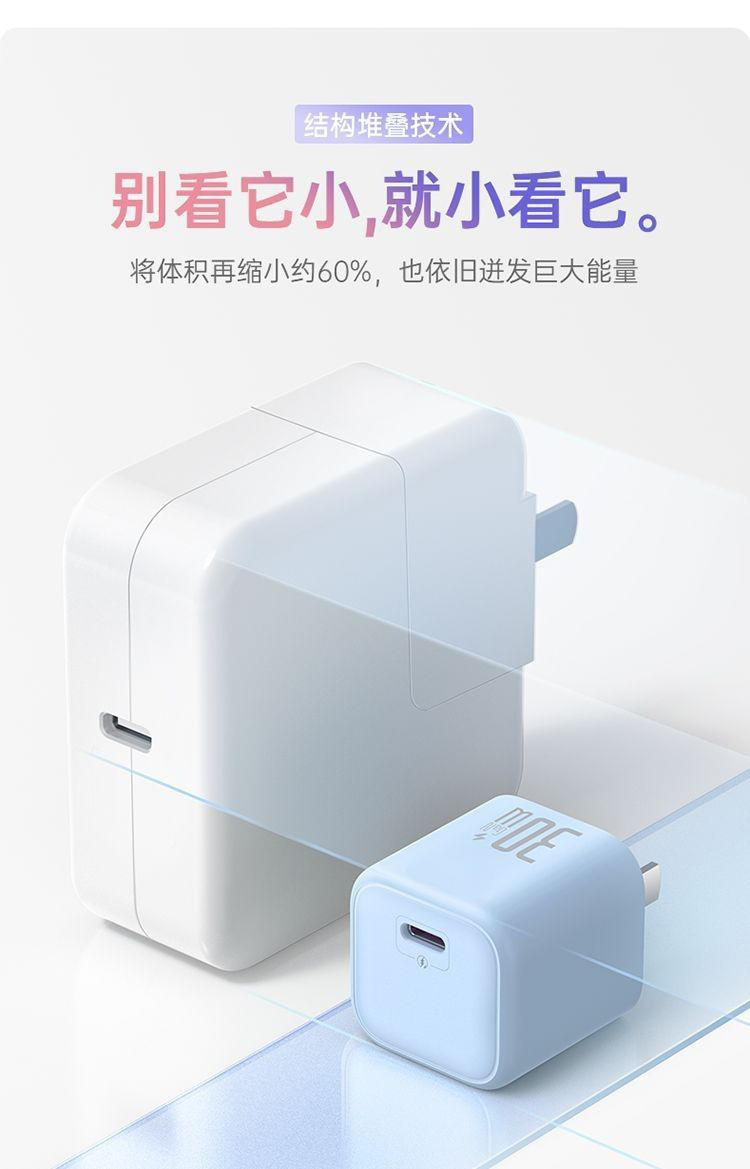 Маленький ледяной куб Pd30W, подходит для Apple 16, Pd зарядное устройство, Iphone15, нитрид галлия, 20W быстрая зарядка