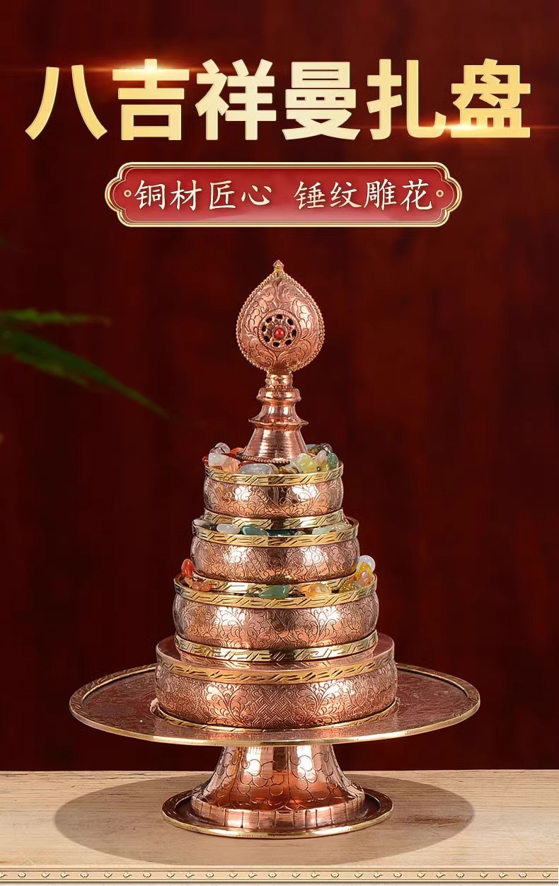 Непальская медная пластина Манза, ручная работа, восемь благоприятных символов, полный комплект