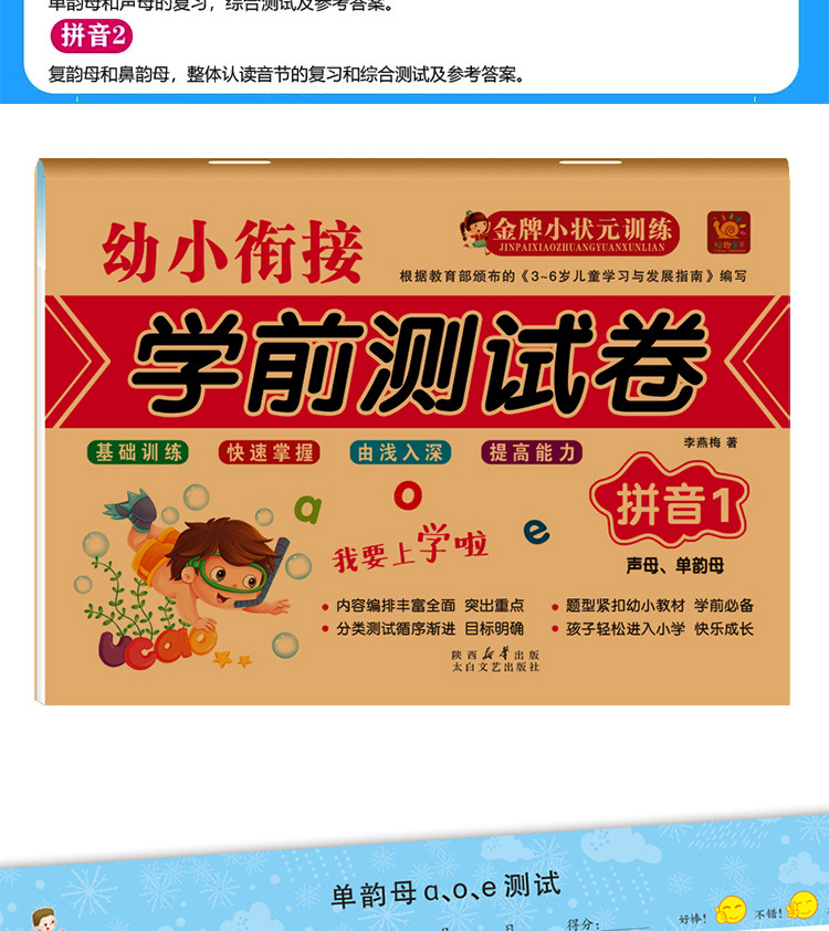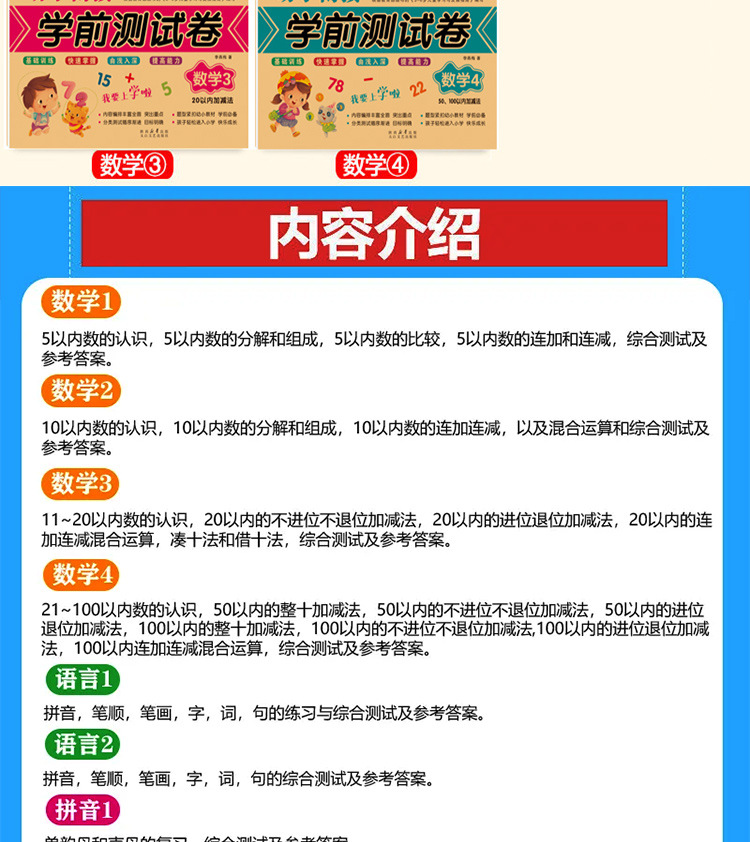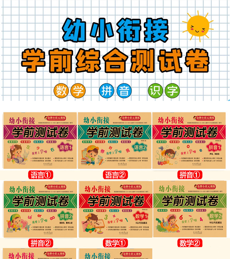 本款悦趣童年系列《幼小衔接学前测试卷》全套8册,标价为单册的价格,亲们根据需要选订!