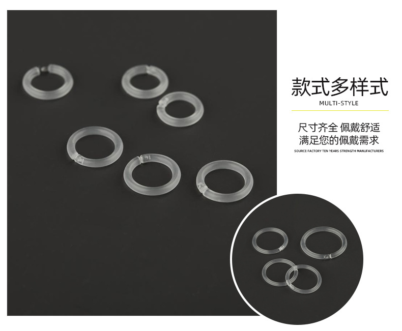 学生透明树脂小耳圈养耳洞隐形塑料素圈耳扣防堵睡觉免摘PP耳圈潮