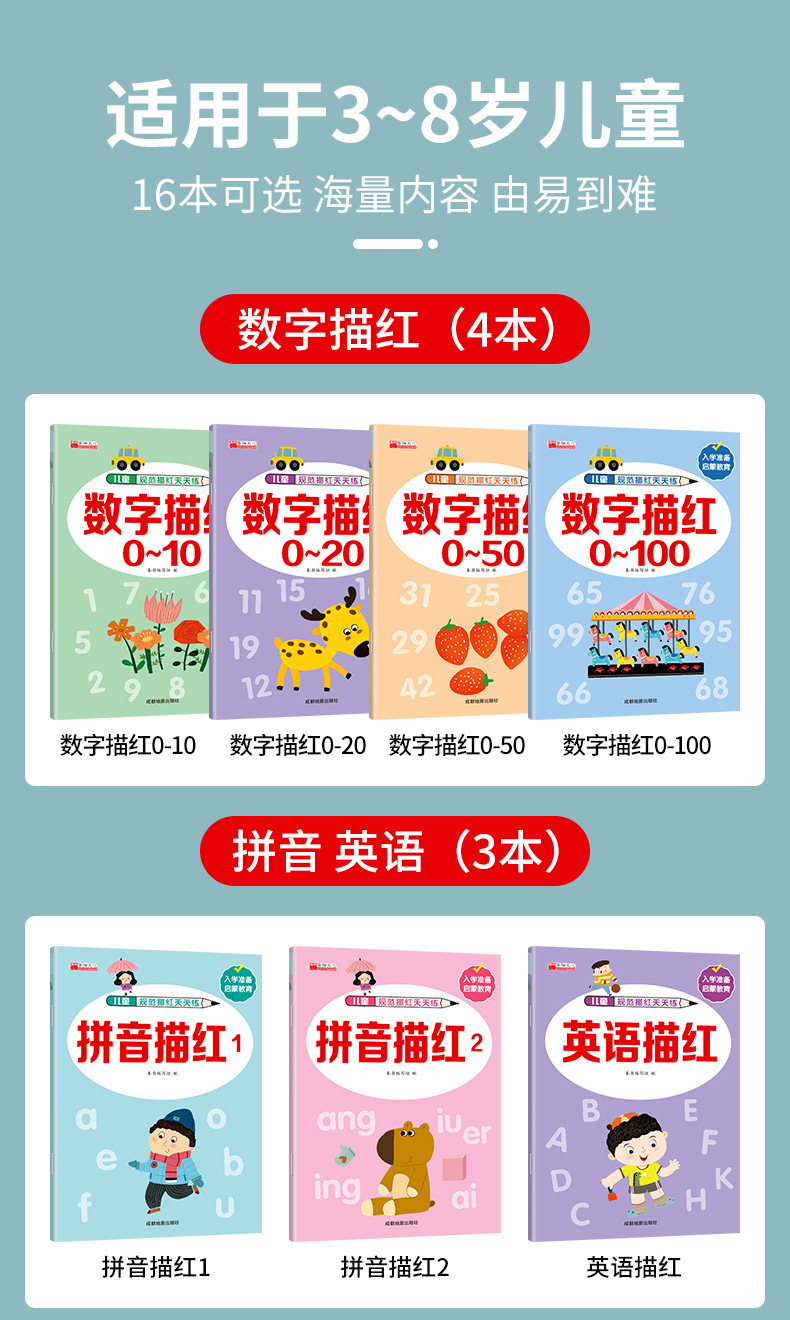 ![]() | Number tracing 0-20 [1 book with 30 pages] | 2шт: ¥1.10, 30шт: ¥1.06, 100шт: ¥0.99 | 8098 | 5697463176047 | |