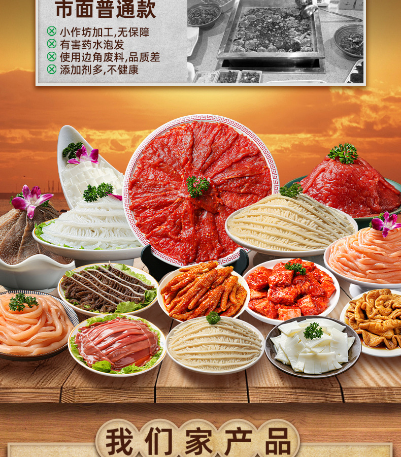 Оптовая упаковка высококачественных ингредиентов для хот-пота: шпажки, самосервисные субпродукты говядины, трепанга, мясо, желудки, кишки утки и гуся, набор для ресторана хот-пот