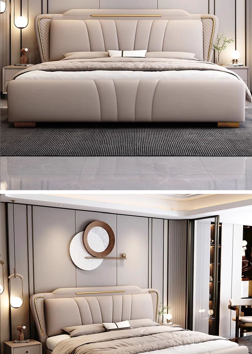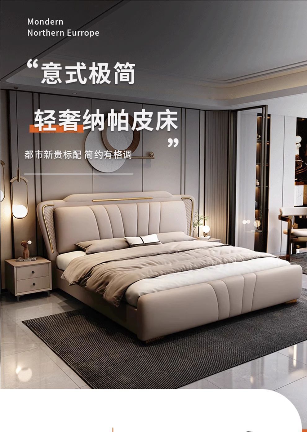 Комплект спальни Linerbang, современная простая главная спальня, кожаная королева, двуспальная кровать, новая свадебная кровать, ночной столик