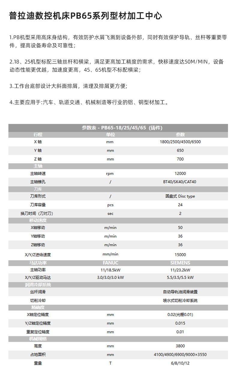 Обрабатывающий центр алюминиевых профилей Pradi, серия Pb65, производство машин для железнодорожного транспорта