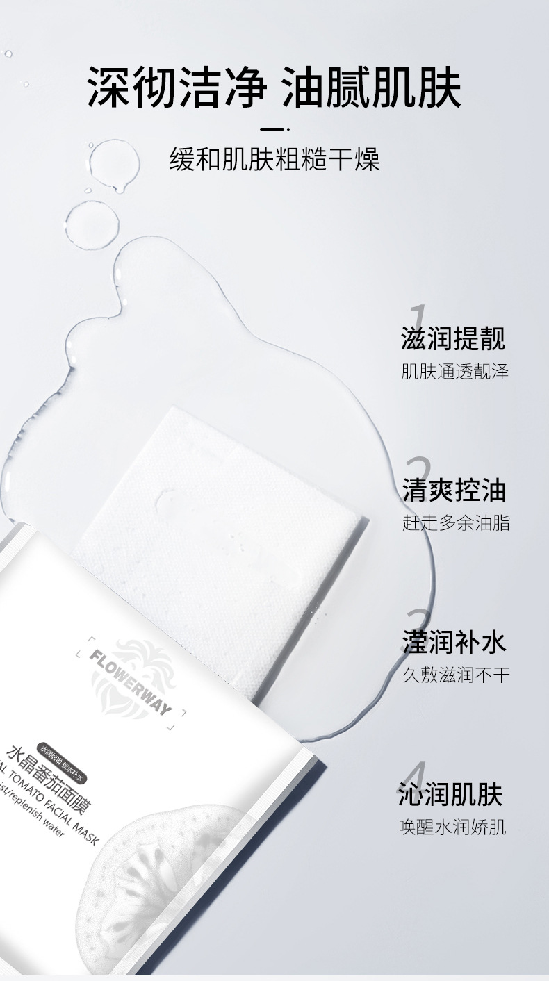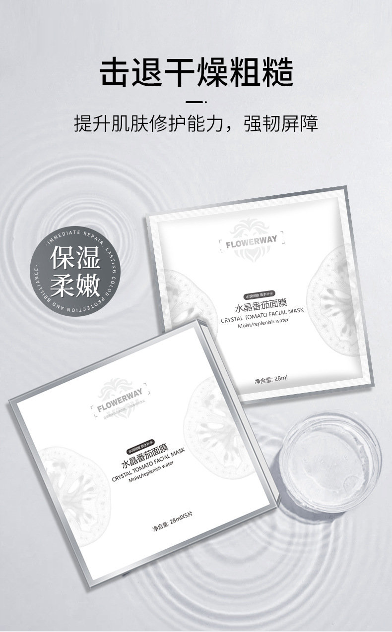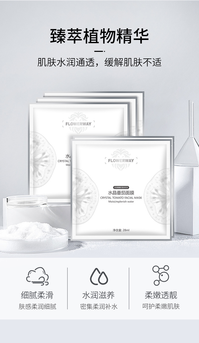 Маска FLOWERWAY с кристаллическим томатом, увлажняющая, улучшает сухость, легкое впитывание, коллагеновая маска