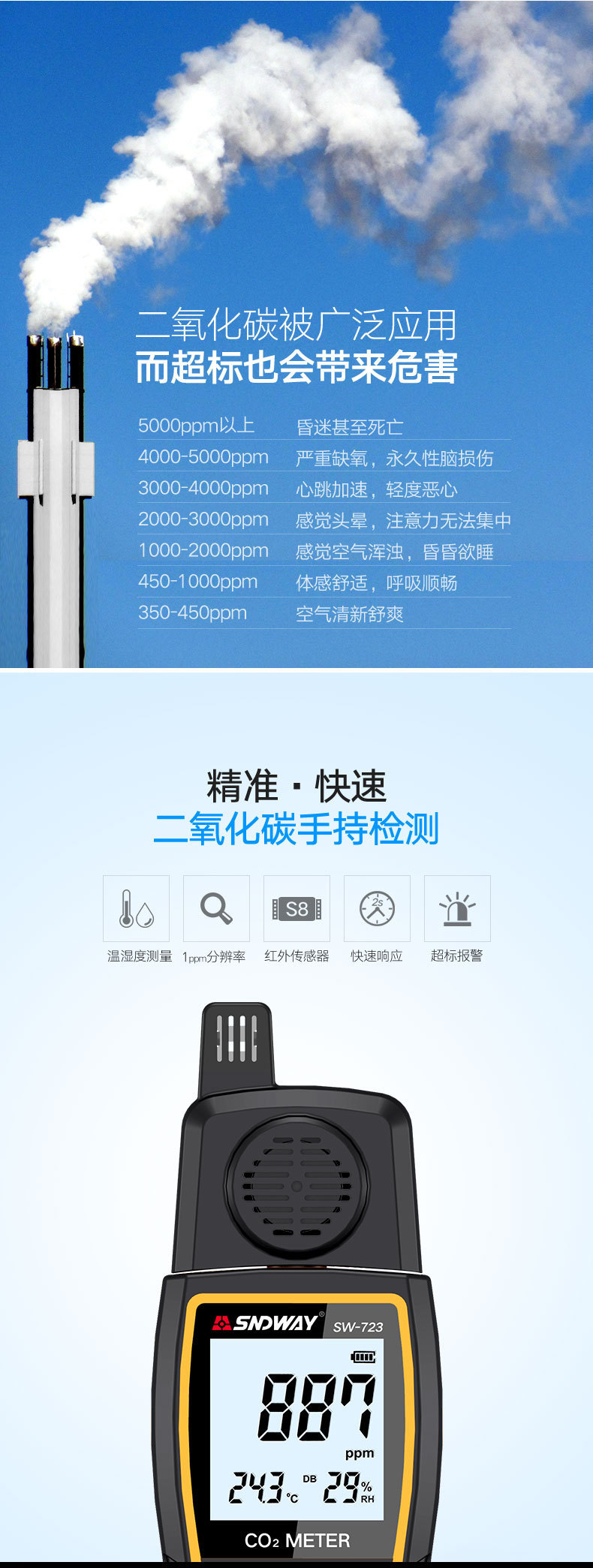Детектор углекислого газа Shendawei SW-723 для промышленного использования