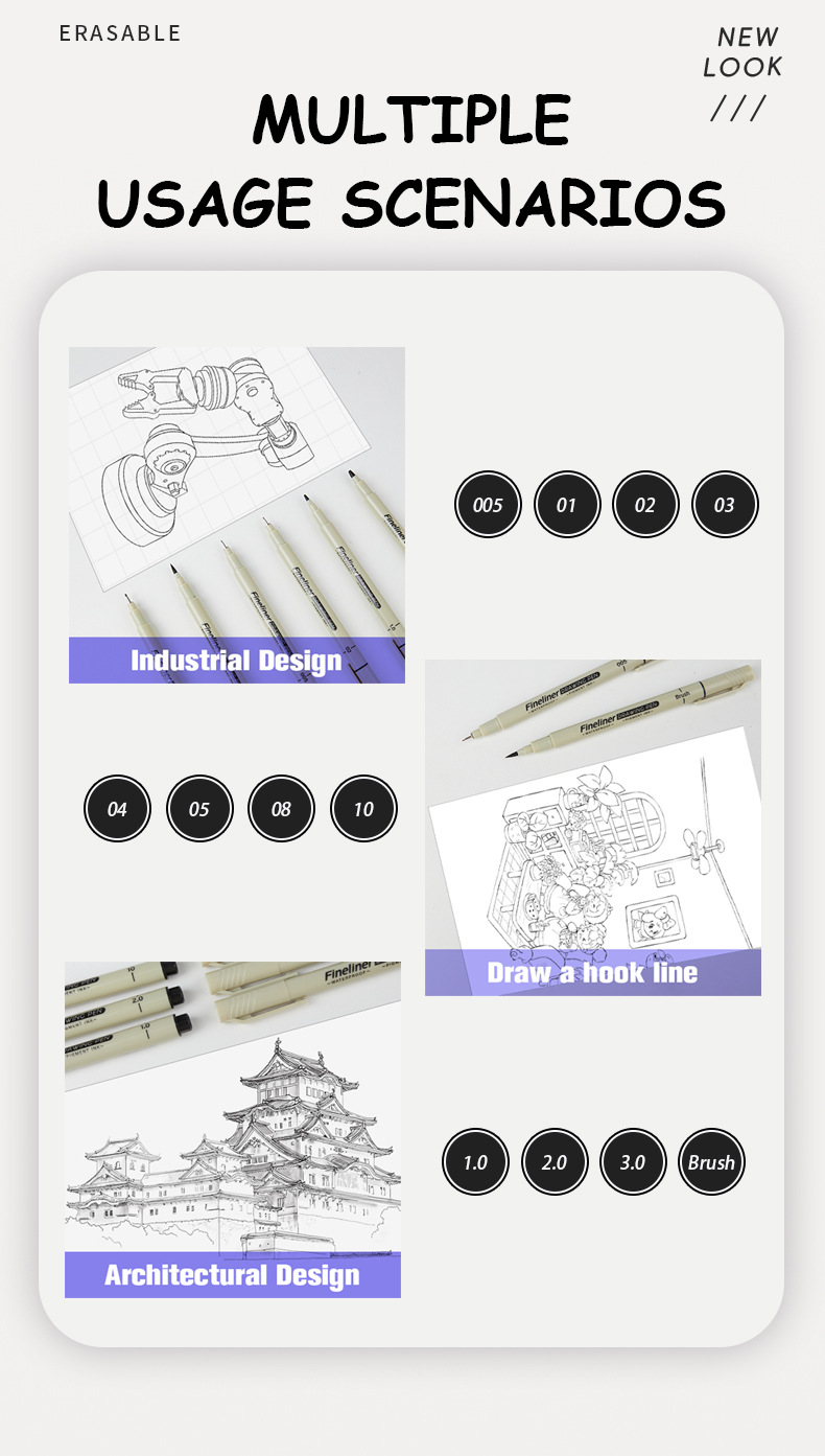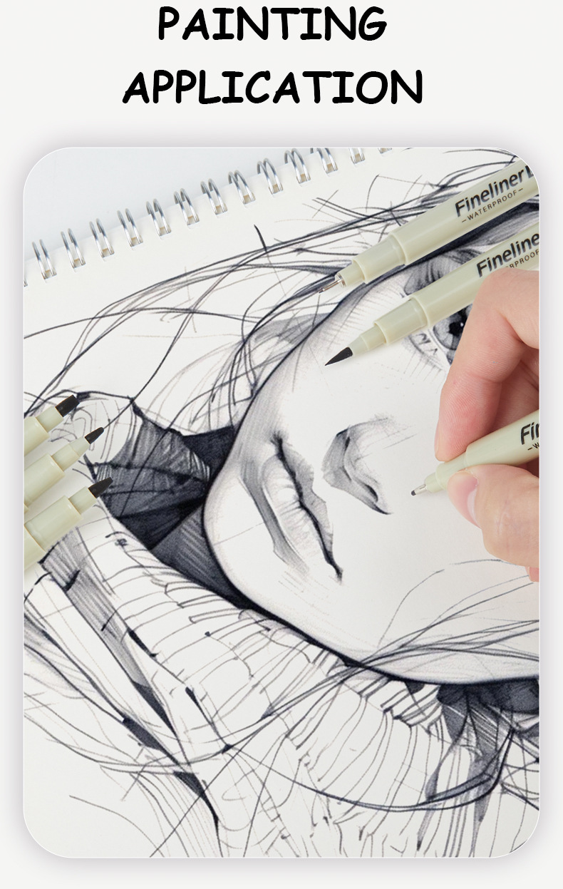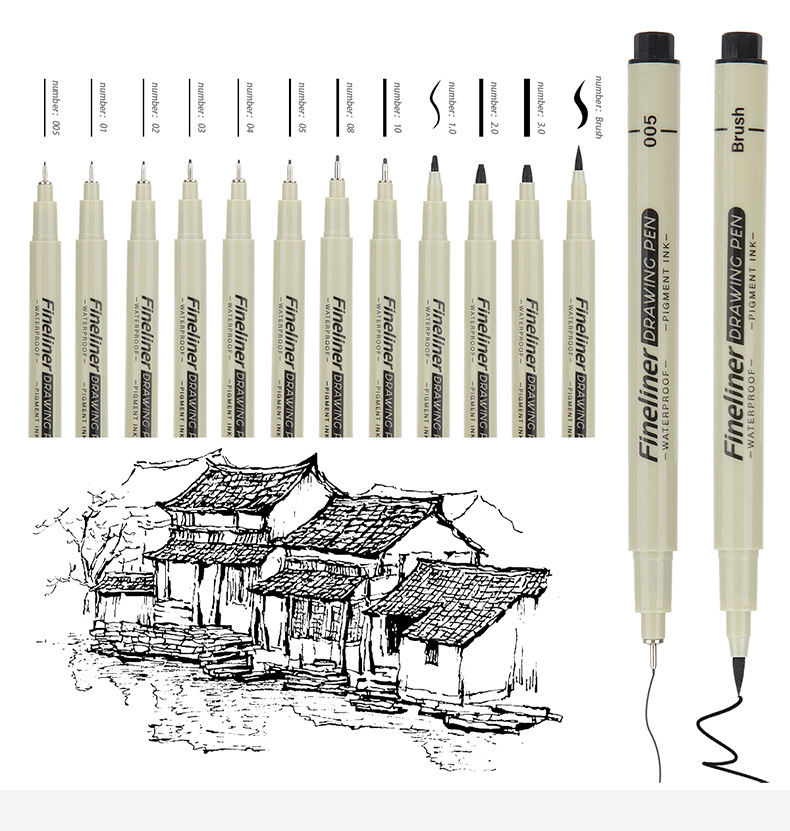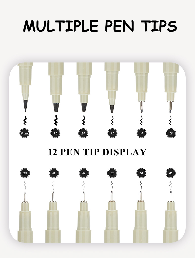 Тонкая черная игольчатая ручка для детей, водонепроницаемая, быстрая сушка, специальный комплект
