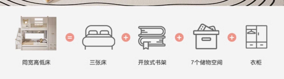![]() | Parallel-same-width bed + upper bed curtains + double drawers/drag bed + slide, straight ladders/side ladders optional | 1500mm*1900mm+ only high and low beds | ¥7844.5 / ≈ 95 417 ₽ | 200 | 5873423151253 | |