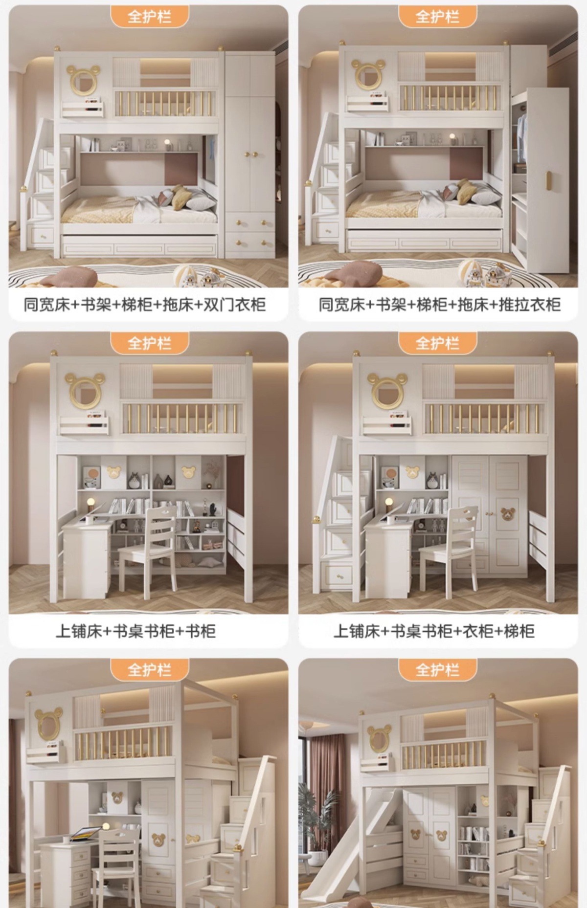 ![]() | Parallel-same width bed + upper bunk curtains + double drawer/drag bed + push-pull wardrobe, straight ladders/side ladders optional | 1350mm*1900mm+ only high and low beds | ¥8424.5 / ≈ 102 472 ₽ | 200 | 5873423151273 | |